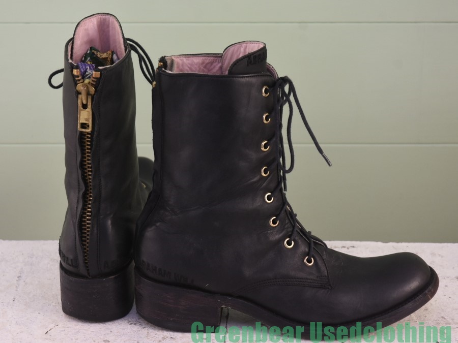Y372◆メキシコ製【MEXICANA】レディースブーツ 黒 ブラック 39 24.5cm