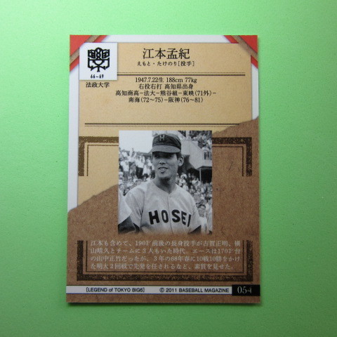 BBM2011 東京六大学野球カード 英雄伝説 #054 江本 孟紀
