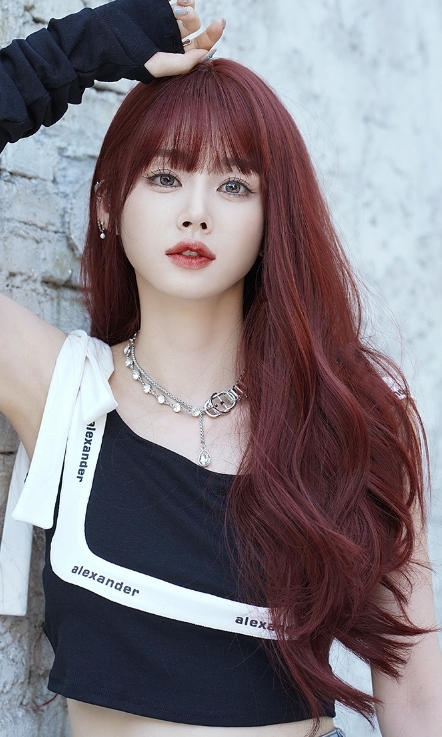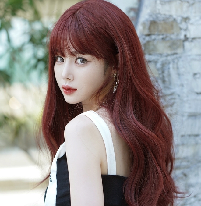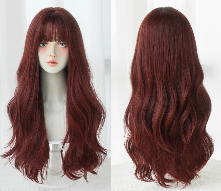 レディース レッド ウィッグ ロング 巻き髪 ぱっつん前髪 かつら フルウィッグ wig 自然 耐熱 通気性 コスチューム個性的k443