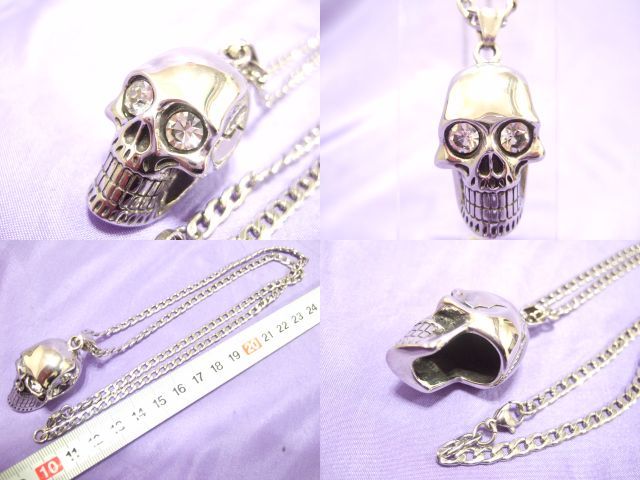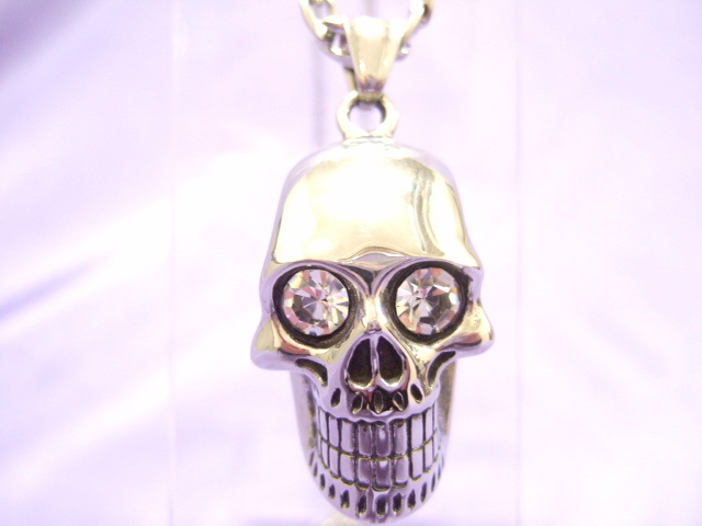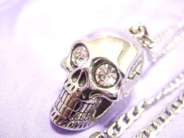 | 商品名 | 横浜最新 魅惑のスカール ダイアの瞳♪ドクロ鏡面仕上げステンレスペンダント&ステンレスチェーン60cm メンズレディース 守護魔除け |