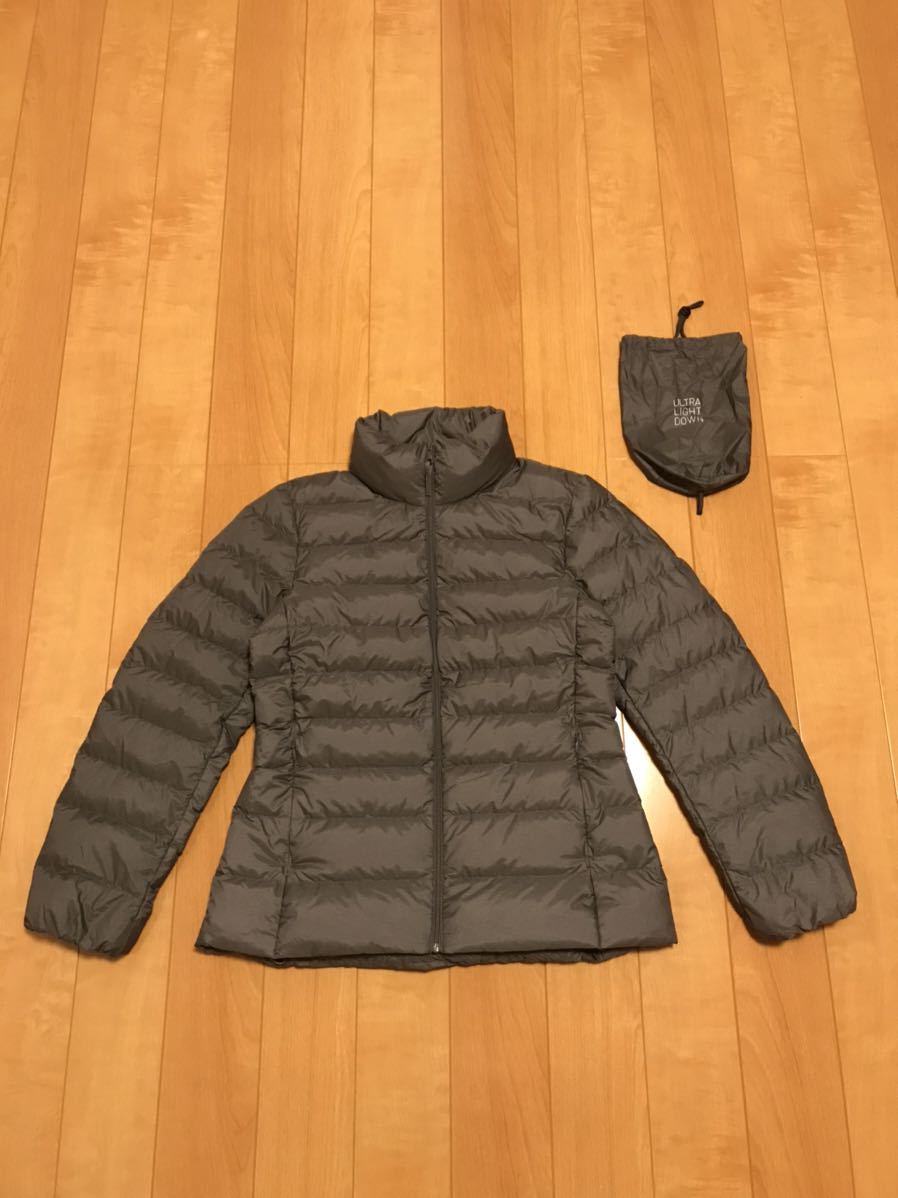 美品☆ユニクロ レディースサイズS 超軽量&高密度ウルトラライトダウン.キルトフルジップジャケット/ヘアライン調艶消しグレー 収納袋付き!