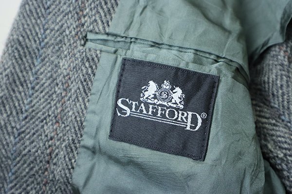 ★ ヴィンテージ ★ツイード テーラードジャケット グレー ◆ STAFFFORD × Harris Tweed ◆ USA製 スタッフォード ハリスツイード ◆K2H