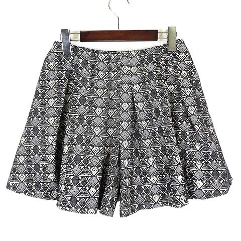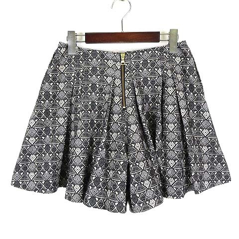 クローラ crolla キュロット ショートパンツ フレア ジャガード 総柄 ボックスプリーツ タック M 38 黒 ブラック グレー ライトグレー