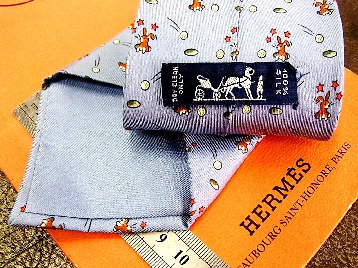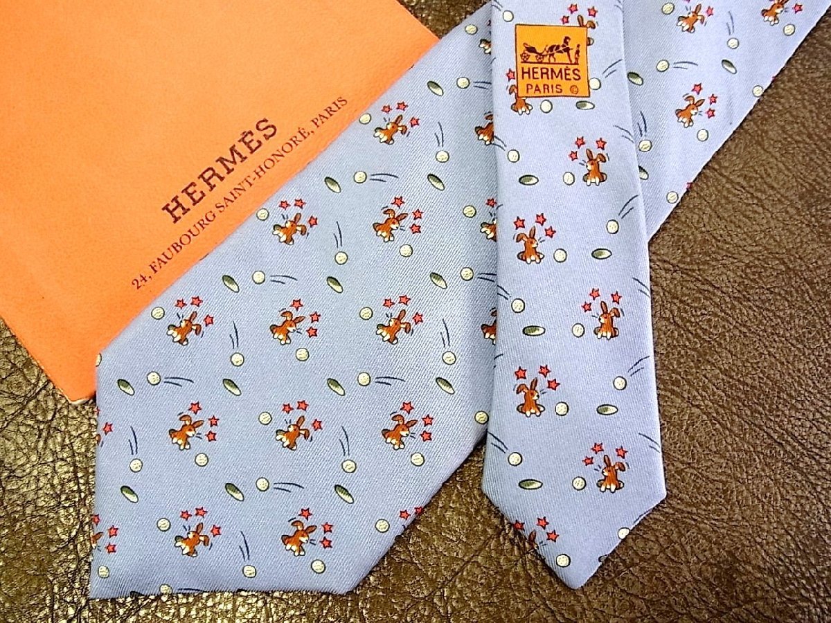 ★並品★4R01927【HERMES】エルメス「兎 うさぎ 動物 ボール 星 スター 柄」ネクタイ