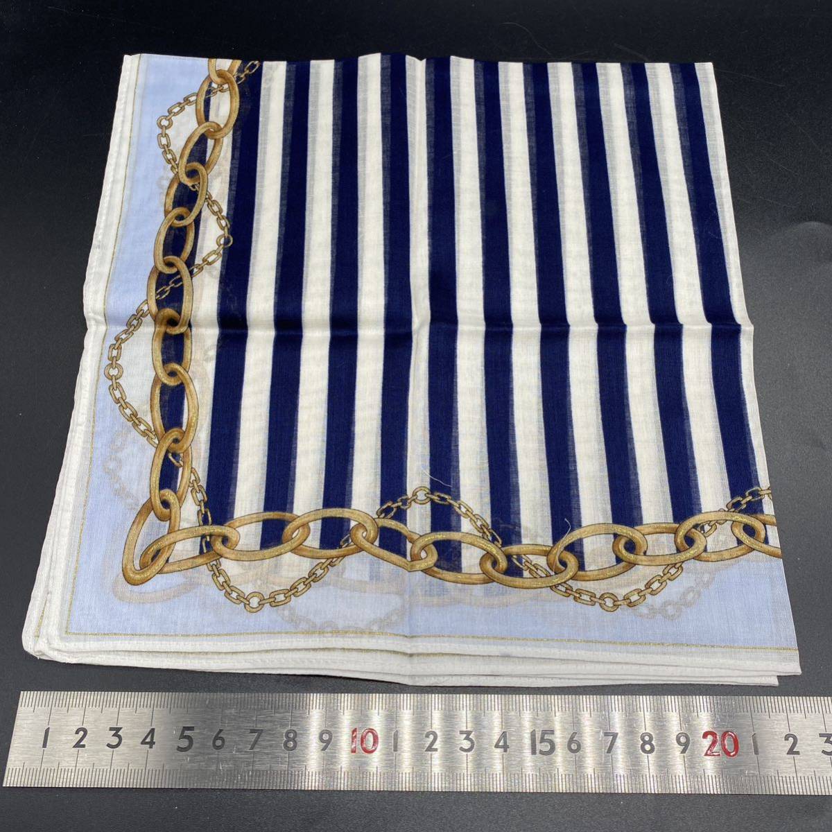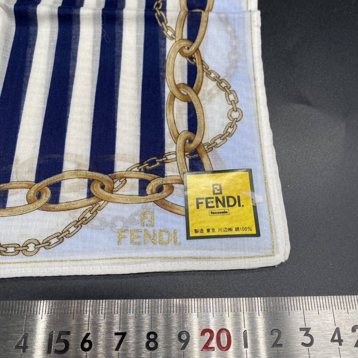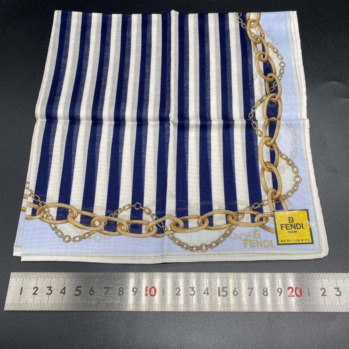 FENDI フェンディ ハンカチ ストライプ ネイビー ライトブルー チェーン no.34