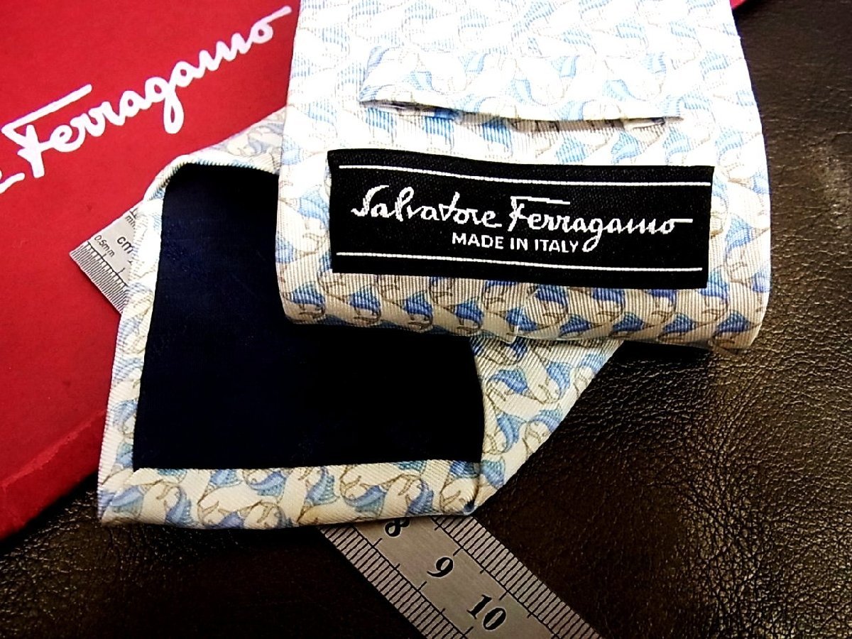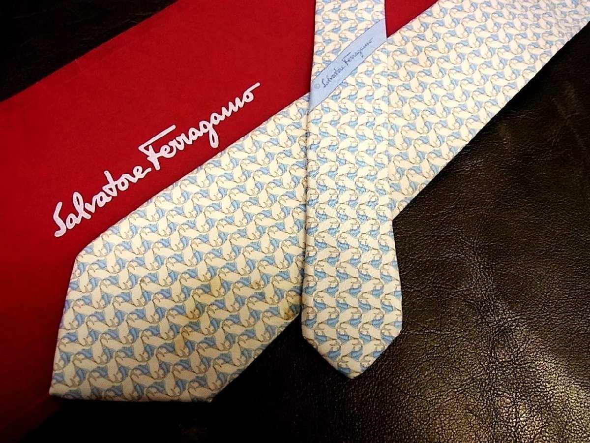 ★並品★4R01178【FERRAGAMO】フェラガモ「カジキマグロ 魚 柄」ネクタイ