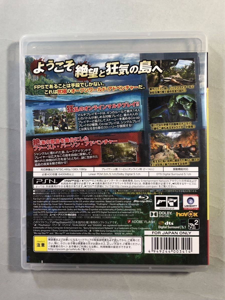 PS3フト ファークライ3「ようこそ絶望と狂気の島へ」UBISOFTです。ケースに擦れ、細かな傷、線傷があります。ディスクのデータ読み取り面に目立つ傷や汚れありません。使用感の少ないきれいな状態です。起動、動作確認済みです。写真のモノが全てです。新品をお探しの方や神経質な方の入札はご遠慮下さい。ノークレーム・ノーリターンで、お願いします。入札よろしくお願いいたします。 C05-332-011206