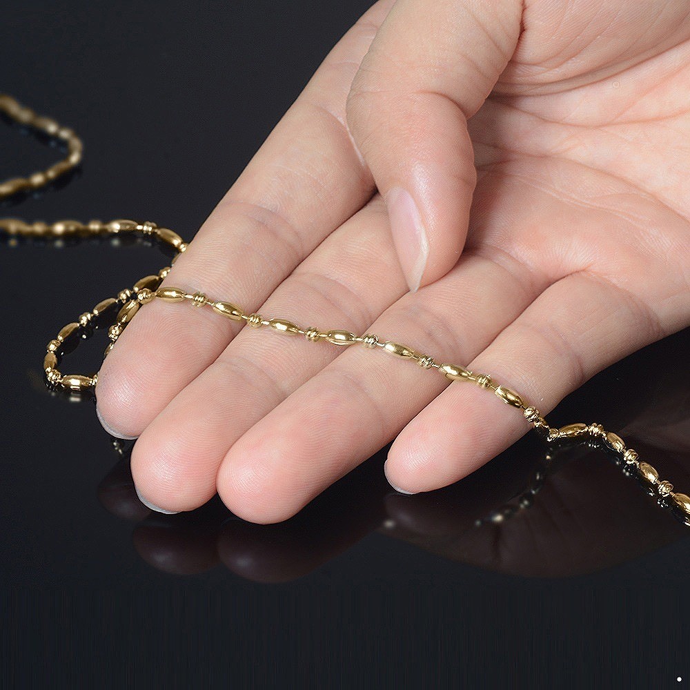 そろばんライスチェーンは、ソロバン型のコマとライス型のコマが交互に連なったボールチェーンにも似たチェーン。少しエスニックな雰囲気が漂うブレスレットです。 ※こちらのチェーンは絡まりにくく万が一絡まってしまったとしても解きやすいデザインです。 ※イオンプレーティング(IPメッキ)とは、金属イオンと不活性ガスを反応させた化合物を製品に蒸着させるコーティングで、ガスの比率でカラーを調整します。従来の鍍金加工に比べて表面耐久性、密着性、工程の安全性が飛躍的に向上しております。 |