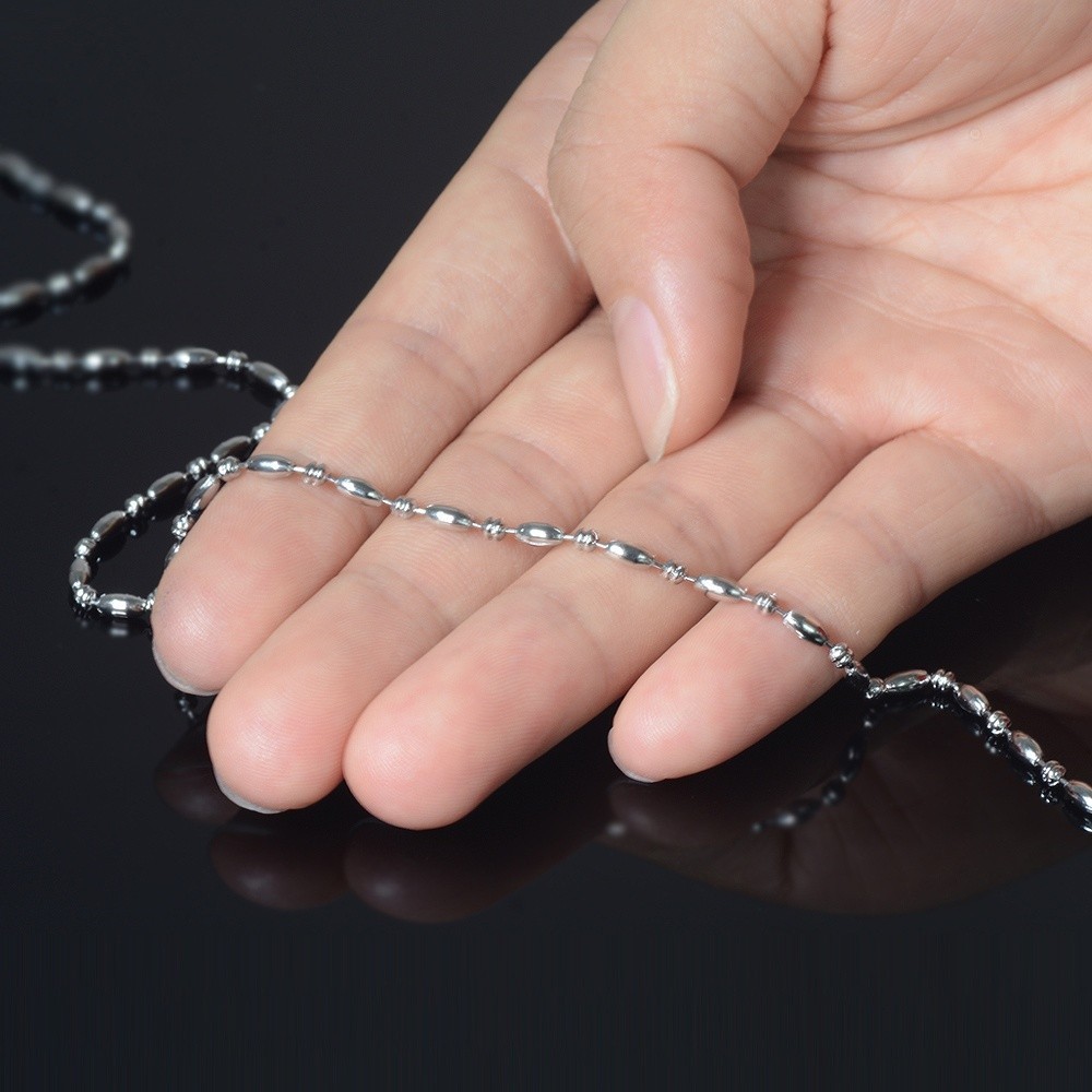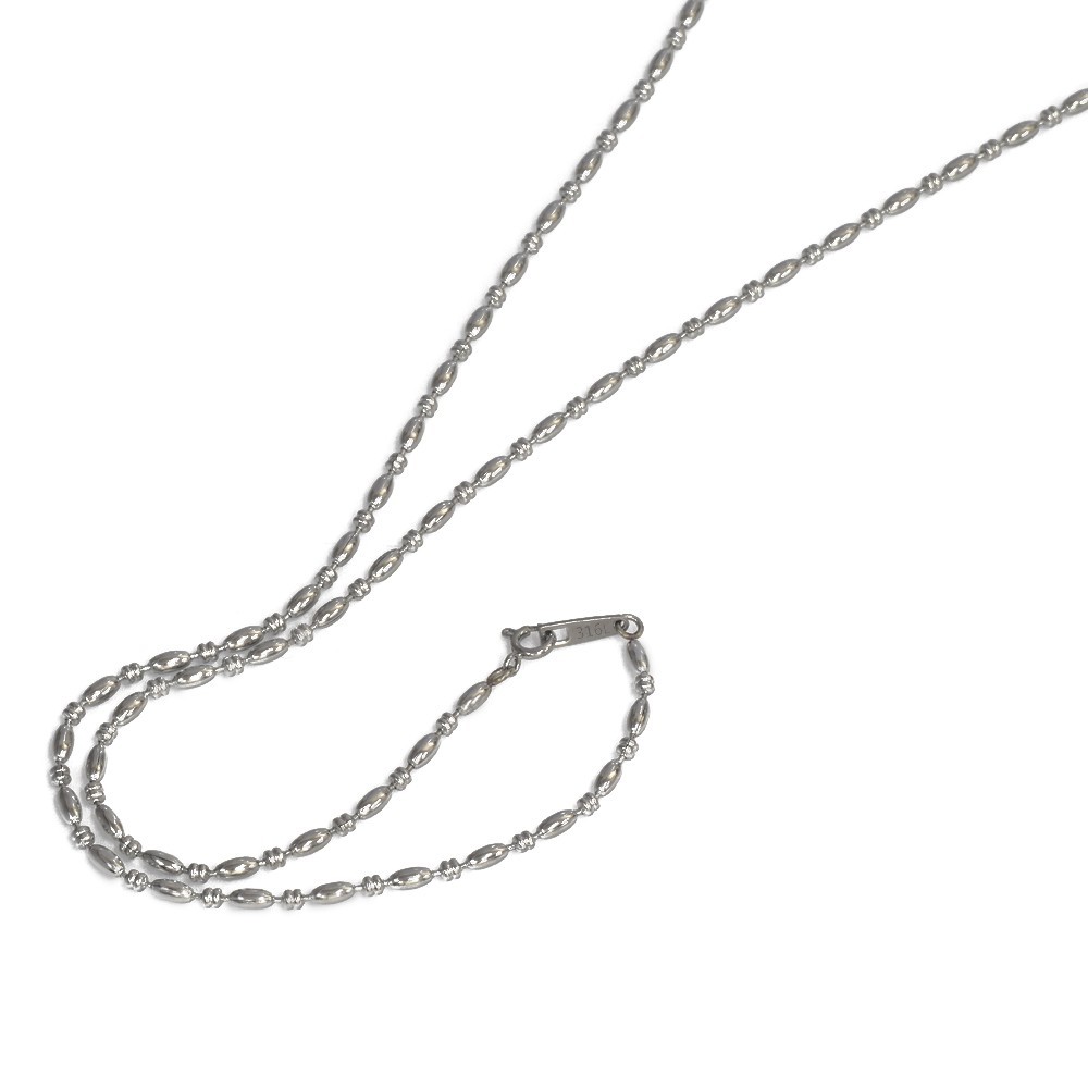 | そろばんライスチェーンは、ソロバン型のコマとライス型のコマが交互に連なったボールチェーンにも似たチェーン。少しエスニックな雰囲気が漂うネックレスです。 ※こちらのチェーンは絡まりにくく万が一絡まってしまったとしても解きやすいデザインです。 |