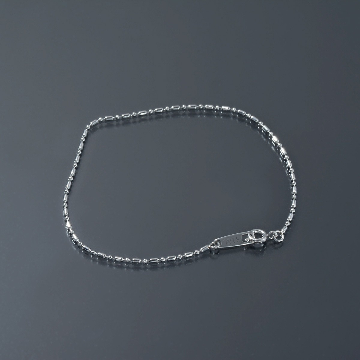 | 変形ボールチェーンは俵型のバーとボール(玉)が交互に連なり、通常のボールチェーンと比べるとアクセントのあるブレスレットです。棒と球のパーツが連なるので(BAR×ROUND)、BRチェーンと商品名に付いております。 ※こちらのチェーンは絡まりにくく万が一絡まってしまったとしても解きやすいデザインです。 |