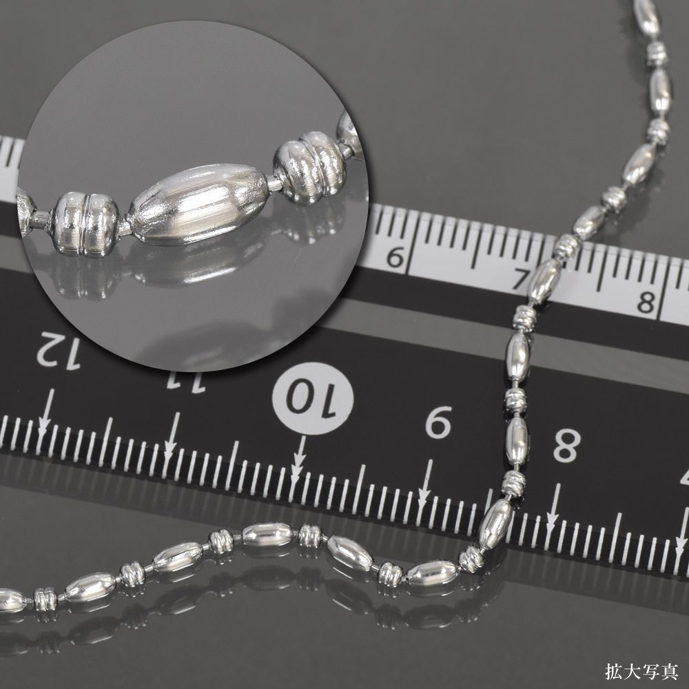 | そろばんライスチェーンは、ソロバン型のコマとライス型のコマが交互に連なったボールチェーンにも似たチェーン。少しエスニックな雰囲気が漂うブレスレットです。 ※こちらのチェーンは絡まりにくく万が一絡まってしまったとしても解きやすいデザインです。 |