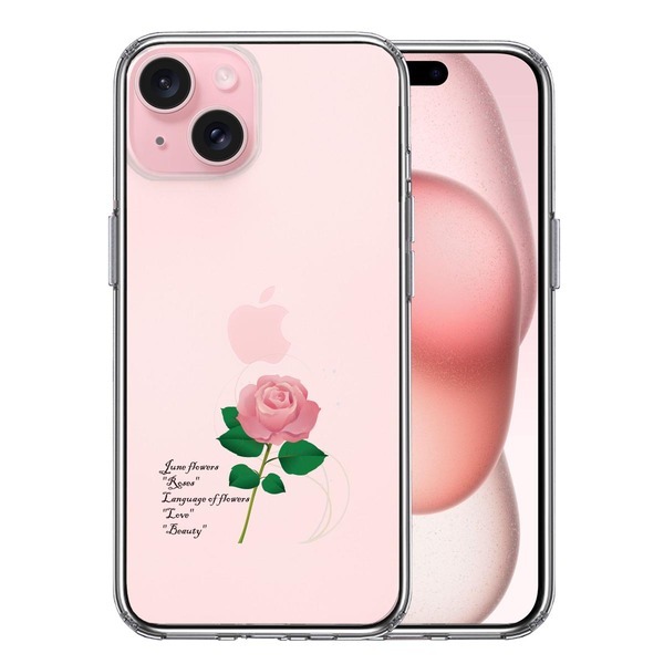 iPhone15Plus ケース クリア 一輪花 6月 薔薇 バラ スマホケース 側面ソフト 背面ハード ハイブリッド