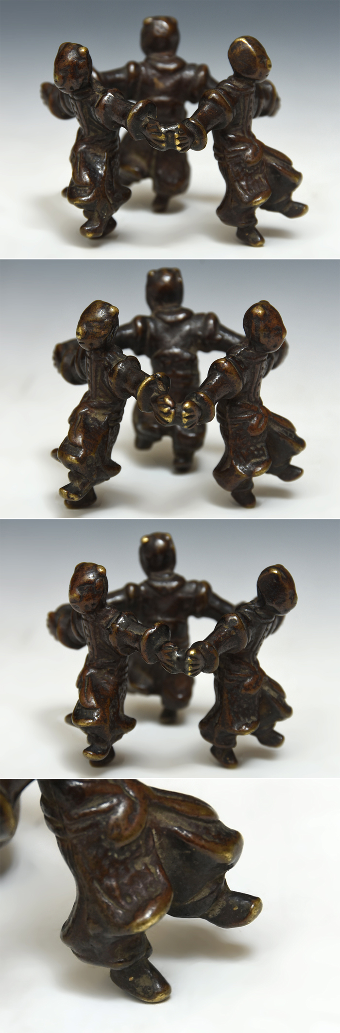 時代 古銅三閑人 蓋置 益田鈍翁 書付箱 覆袋付 三人形 茶道具 炭道具 金工 金属工芸 古玩 数寄者 美品 |