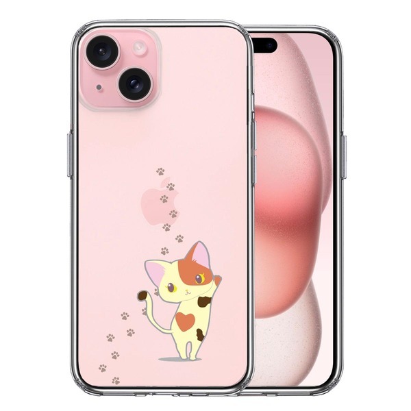 iPhone15Plus ケース クリア ジャケット 三毛猫 フットプリント スマホケース 側面ソフト 背面ハード ハイブリッド