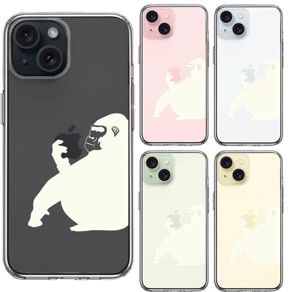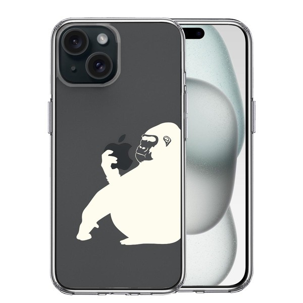 iPhone15 ケース クリア ゴリラ ホワイト スマホケース 側面ソフト 背面ハード ハイブリッド