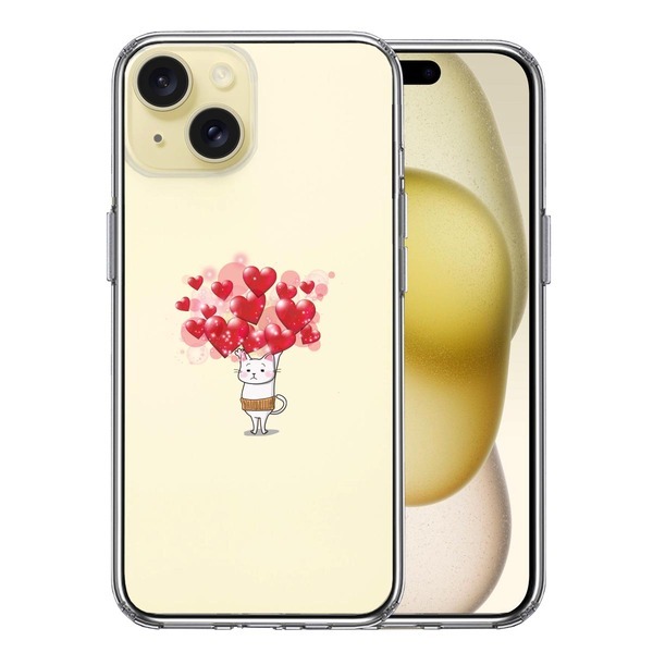 iPhone15Plus ケース クリア 猫 ネコ にゃんこ 腹巻 ハート 2 スマホケース 側面ソフト 背面ハード ハイブリッド