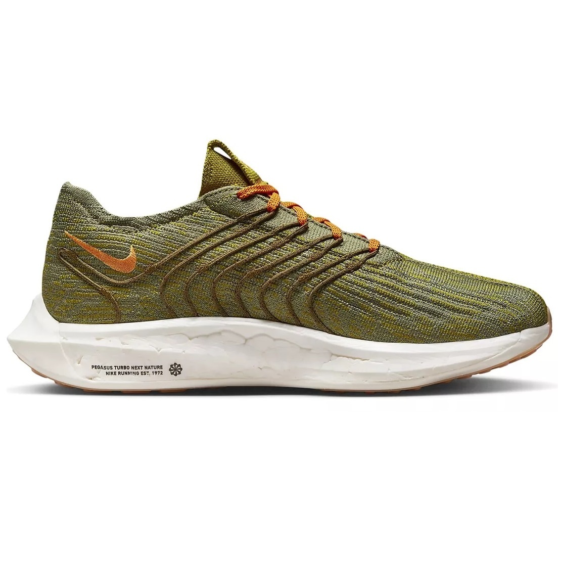 ■メーカー:NIKE (ナイキ) ■モデル(品番):PEGASUS TURBO NEXT NATURE (FJ5445-390) ■素材:甲=合成繊維| 底=合成底 ■生産国:ベトナム ■カラー:草緑//黒/オレンジ ■商品状態:新品箱無し ■サイズ:JPN 25.0cm | US 7 ◆サイズ構造について◆ 同社のスニーカーとしては標準的な構造だと思います。 同社のサイズ構造に認識が無い方はご入札はしないで下さい。 サイズ感はあくまで出品者の感覚です。サイズ感に関しましては個人差が御座います。 ■特徴 サポート性と反発性に優れたハードランニングに適した軽量設計のランニングシューズ。 アッパーにはサポート性・伸縮性・通気性に優れた高強度のファイバーを使用したFLYKNITを採用。 ZoomXフォームが、軽量でありながら足を踏み出すたびに反発力を発揮。 ロッキングチェアのような形状のフォームがランナーのストライドを3段階でサポート。 アウトソールのワッフル状のトレッドがトラクションを発揮。 ■備考 ◎国内正規代理店の商品です。 ◎基本的に画像に有るものが全てとお考え下さい。 ◎箱無し保管のためソールに白い部分が有るモデルは少し汚れている場合が御座います。 ◎些細な汚れも気になるような方は入札はしないで下さい。 ◎箱無しのため箱無し梱包発送となります。輸送過程で少し傷が付く可能性が御座いますがご了承下さい。 ◎可能な限り実色を再現しておりますがディスプレイ機器や観覧環境で色合いが異なる場合が御座います。 ◎カラーが気になる方は品番をネット検索して他の商品画像の色合いも確認してみて下さい。 ◎製造過程で生じた・縫製のズレ・些細な汚れ・些細な傷・少量の付着接着剤が有る場合が御座います。