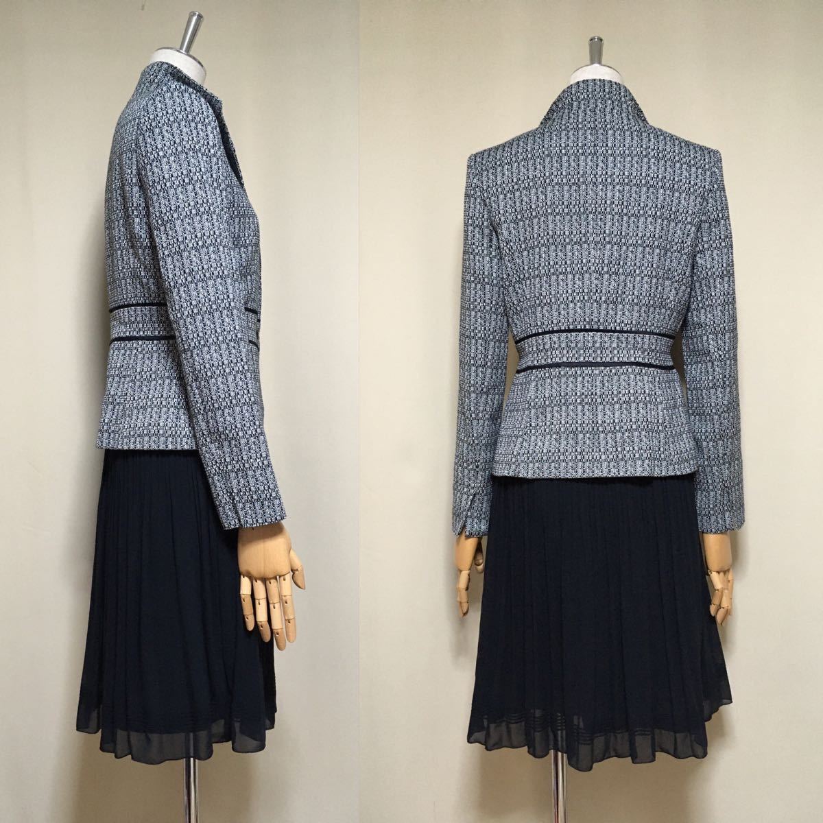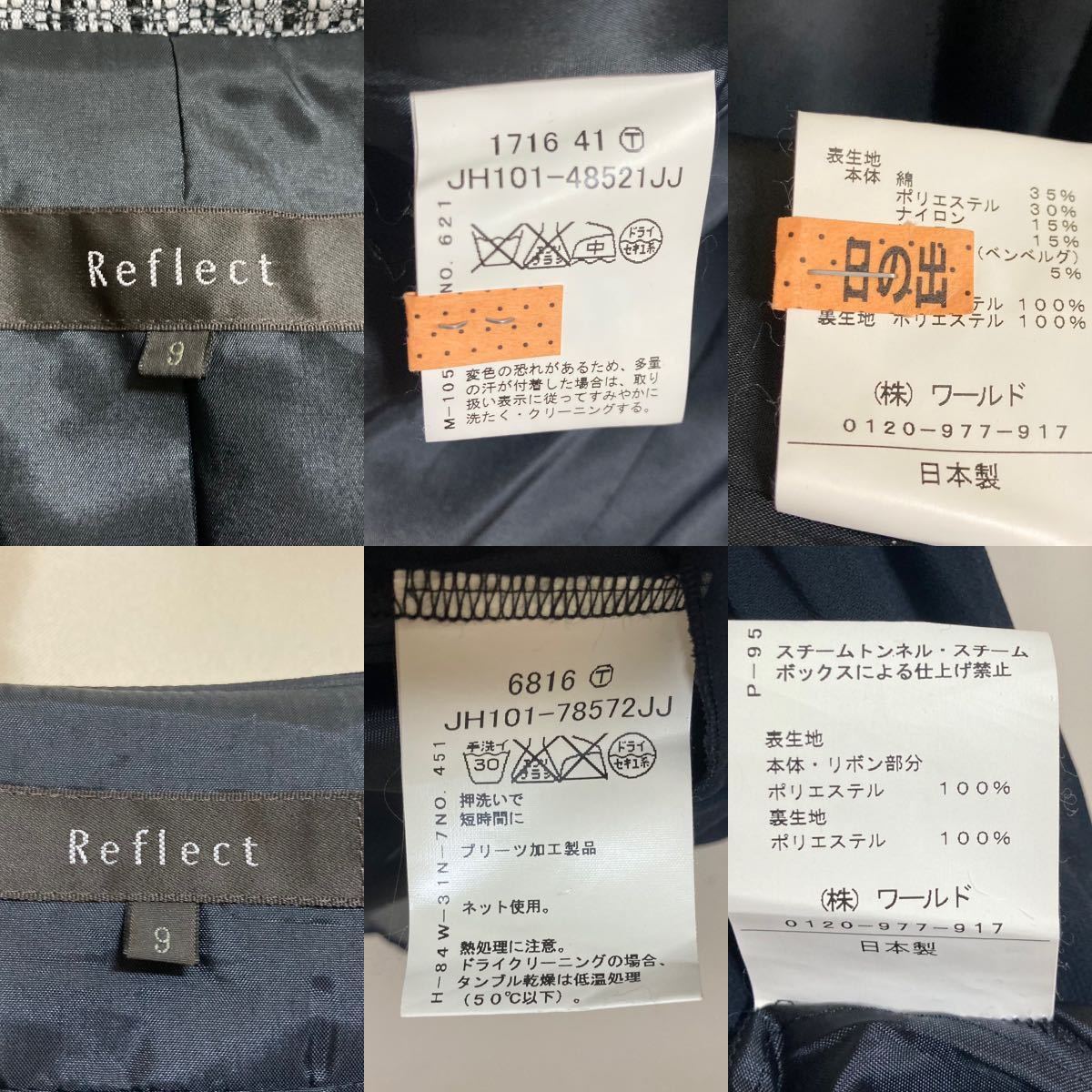 【美品】Reflect リフレクト ツイード セットアップスーツ 9号/Mサイズ ブラック系 レディース スタンドカラージャケット 卒業式 入学式