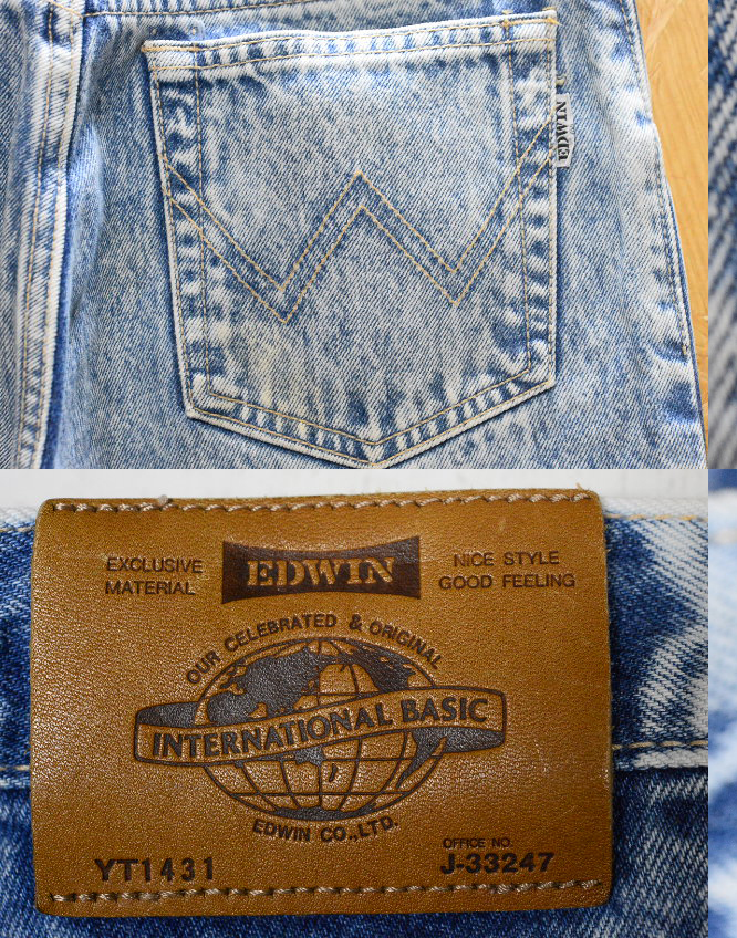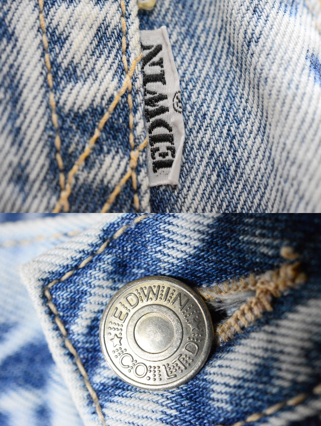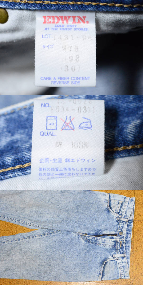 W30 80'sビンテージ エドウィン1431ハイウエスト ニュートンスリム ケミカルウォッシュ 股下79cm