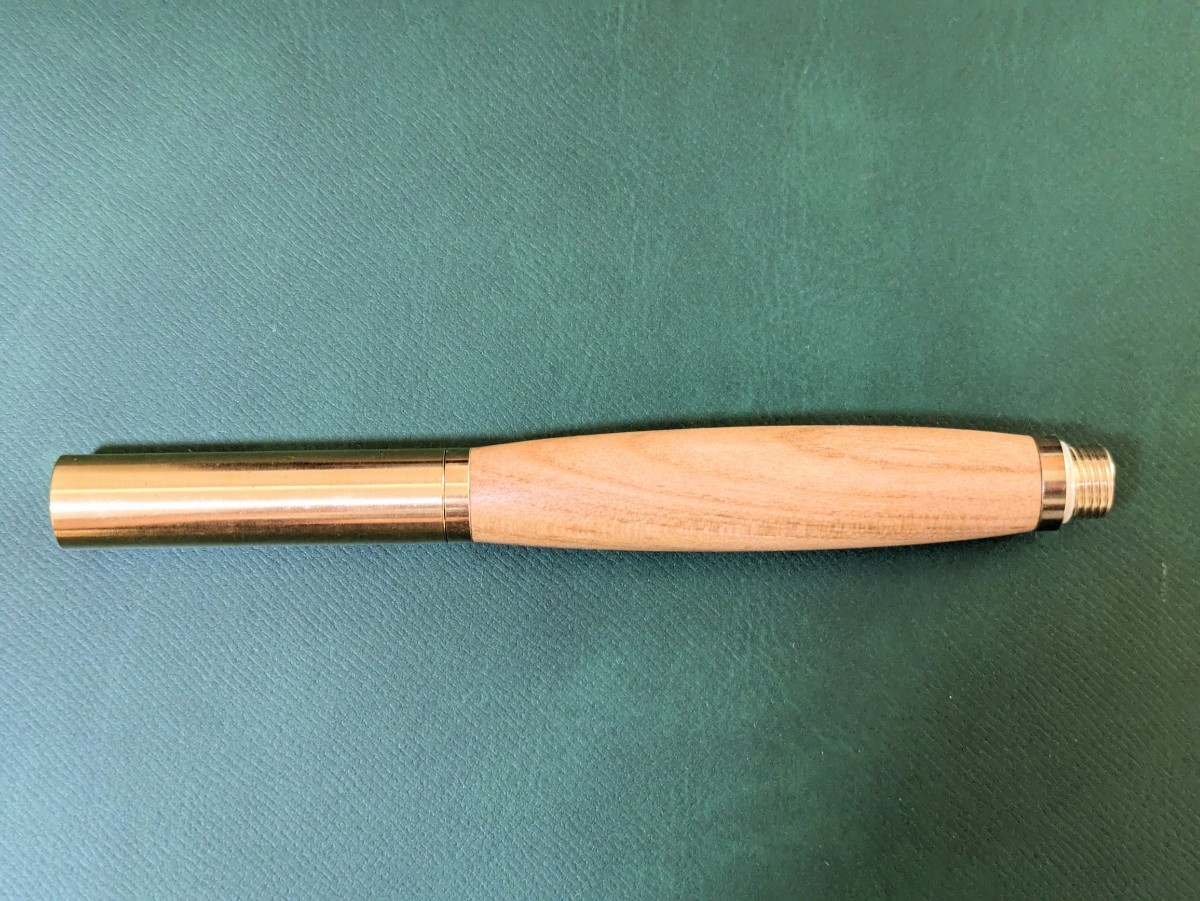 金具部分は真鍮製です。色ムラ等が見られることがありますが、個性として理解して頂けますと幸いです。また、木軸部分と同様に経年変化を楽しんでいただけるものと思います。