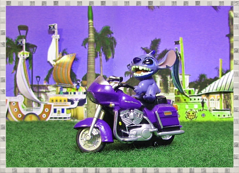 可愛い! コラボ作品 スティッチ バイク ハーレー ツーリング ★ 紫色です! ★ カスタム オートバイ ステッチ ご当地