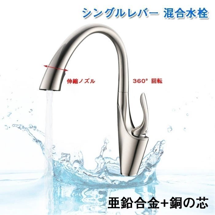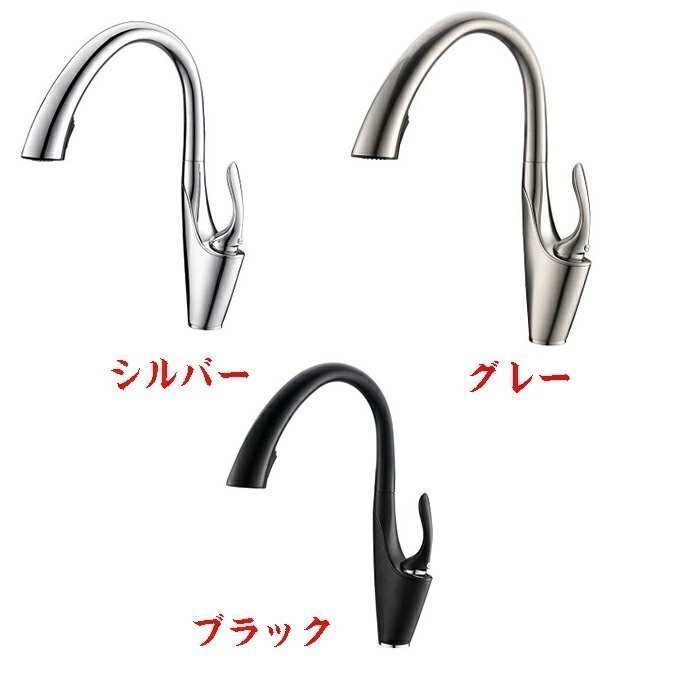 キッチン 蛇口 360°回転 伸縮ノズル シングルレバー 混合水栓 洗面用 アンティーク 亜鉛合金+銅の芯 混合水栓 グースネック ☆3色選択/1点