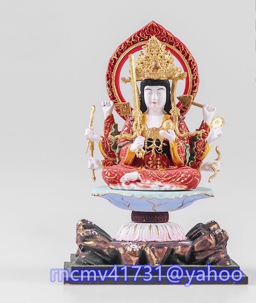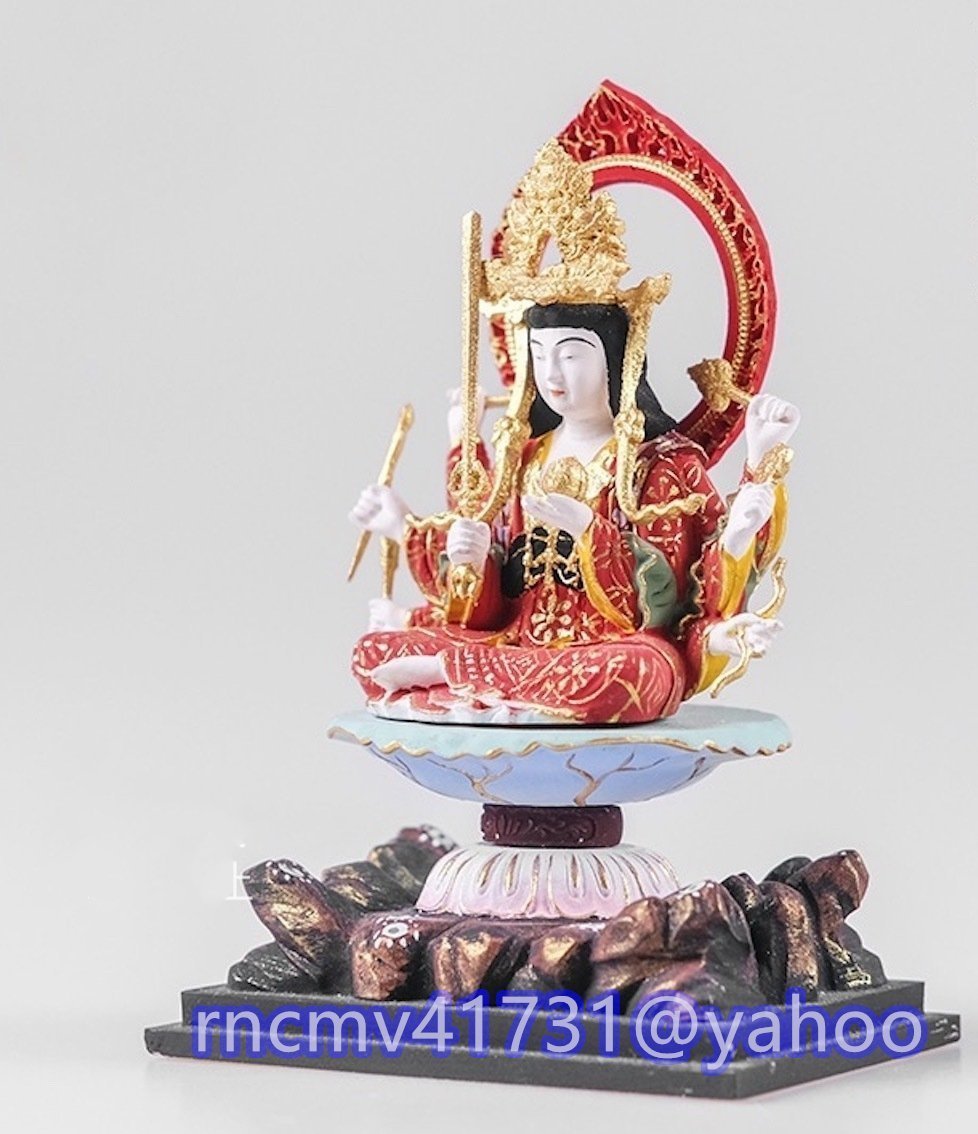 一刀彫★ 八臂弁財天 (弁才天)弁天 辨財天 精密細工 黄楊木 木彫 装飾品 工芸品