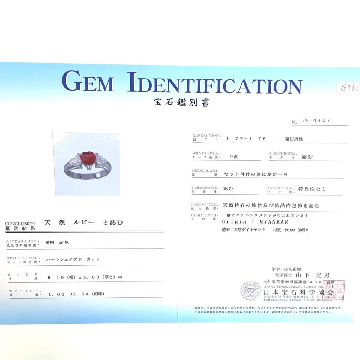 素材 | ■PT900 ■宝石:ルビー 1.02ct・ダイヤモンド0.64ct |