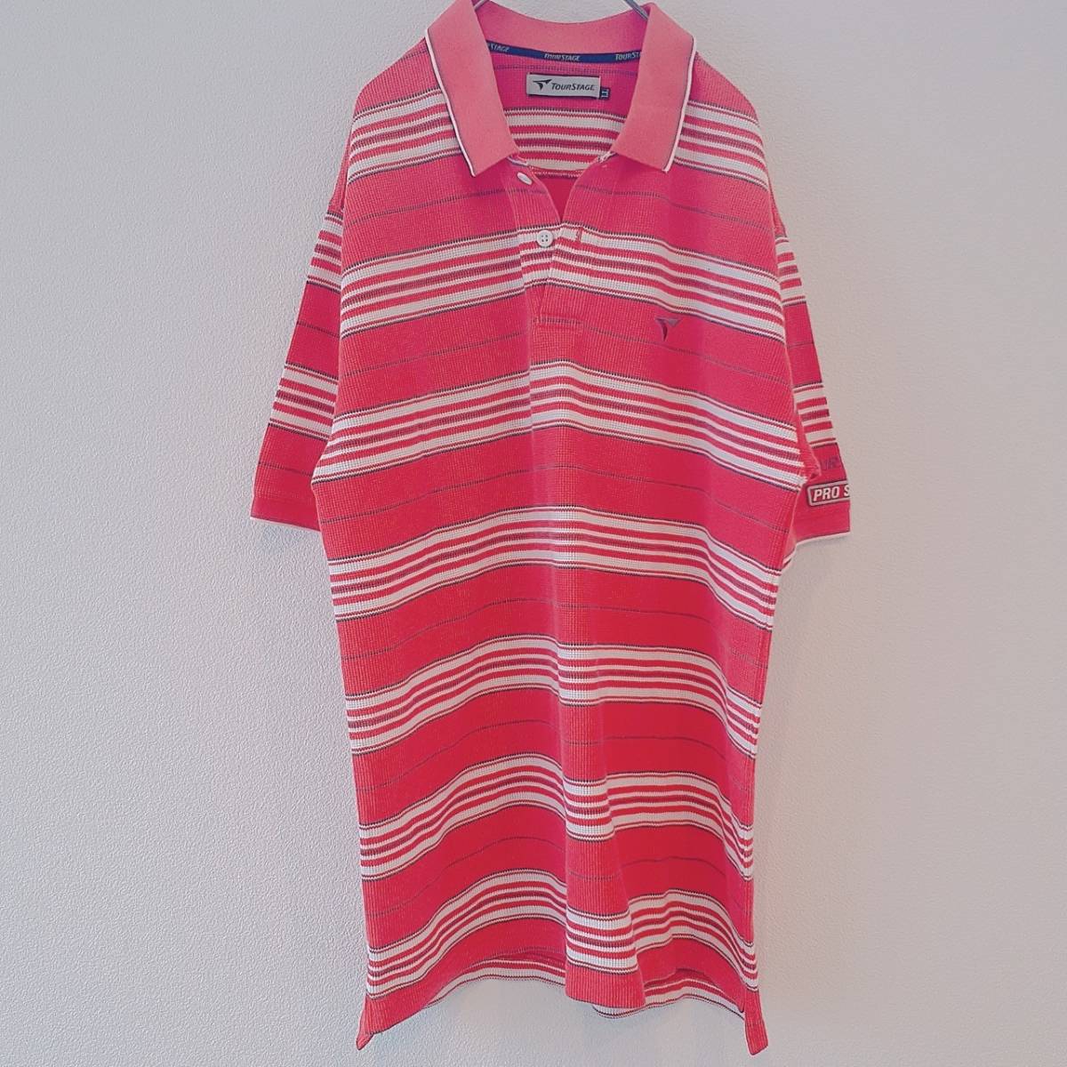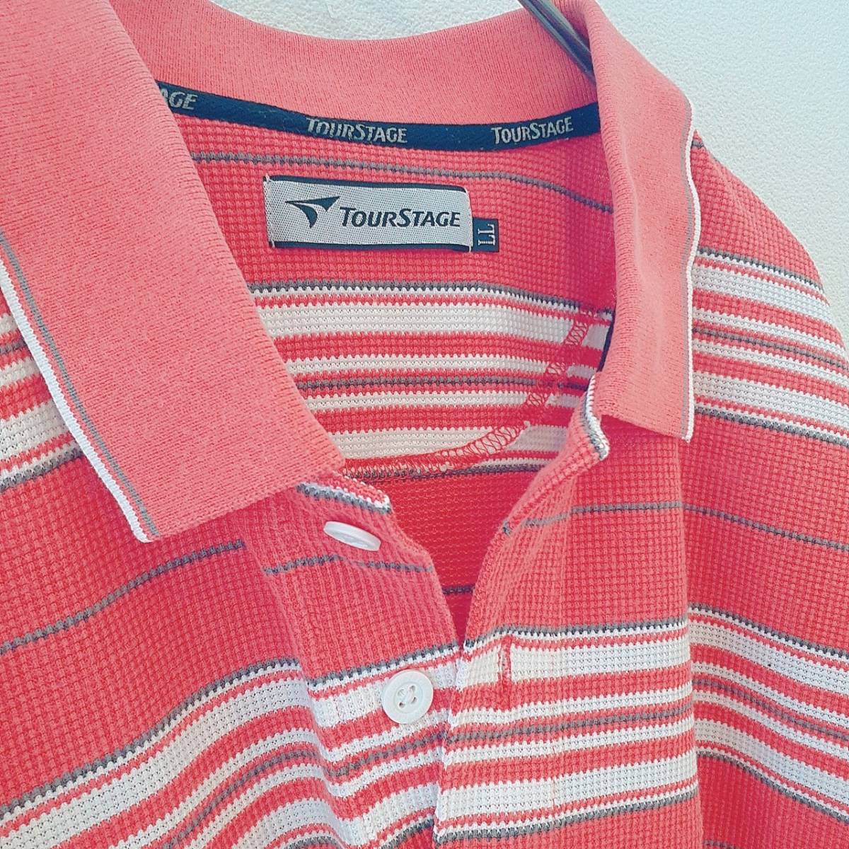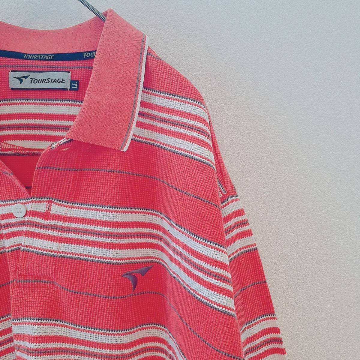 TOUR STAGE トップス ポロシャツ ロング 赤×白 ボーダー LL メンズ |
