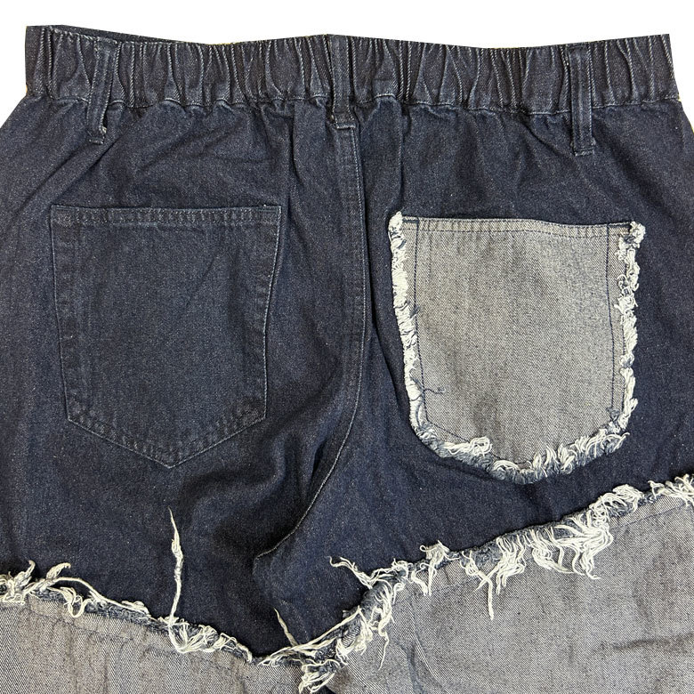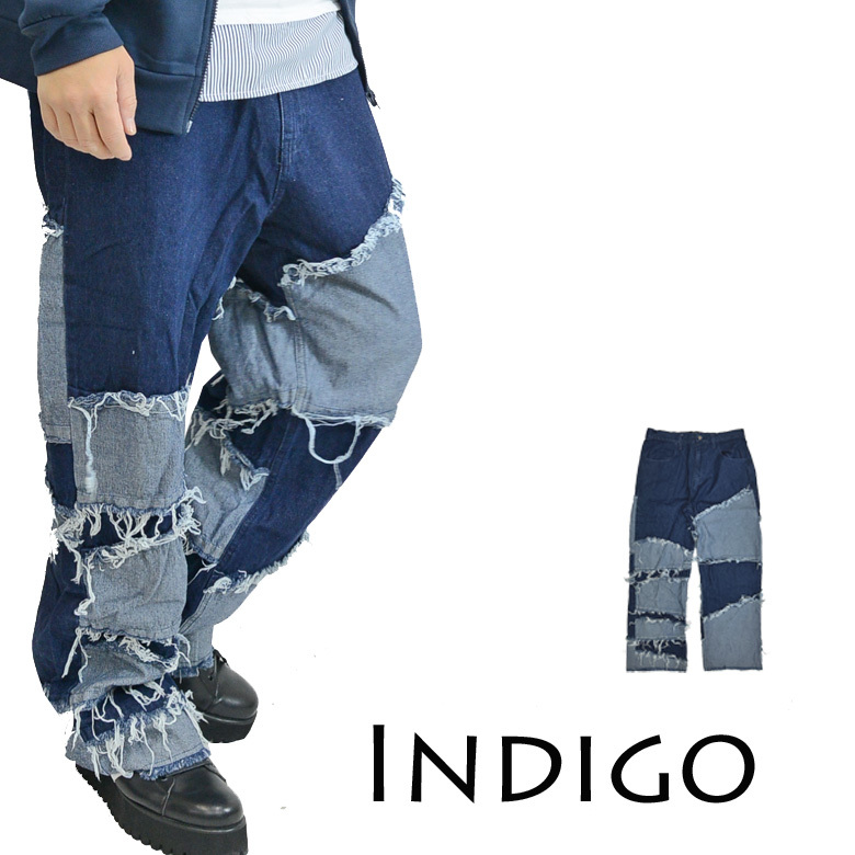 フリンジパネル切替 ワイドイージーデニムパンツ 10ozデニムワイド 5273y233 新品 インディゴ XL