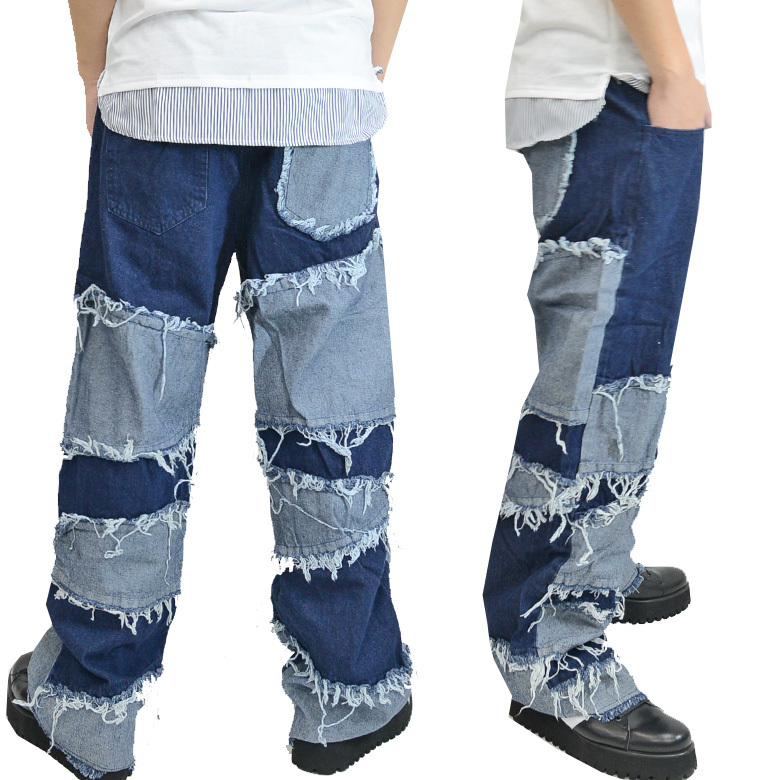 ワイドパンツ/デニムパンツ/無地/ルーズパンツ/ジップフライ/