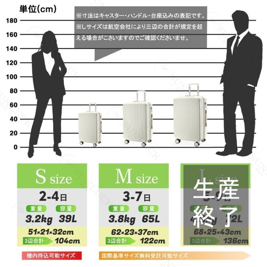 ※Sサイズは100席以上の国内線機内持込可サイズ(拡張時は不可)