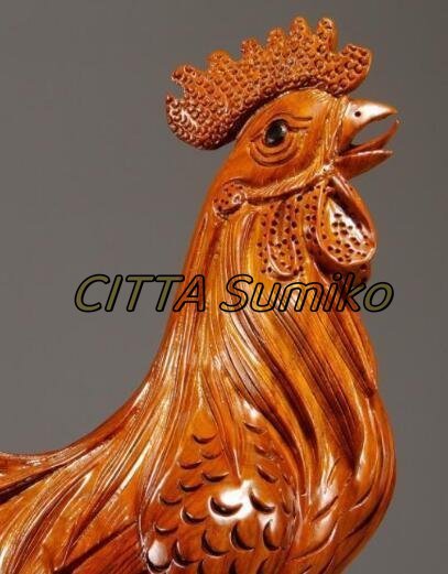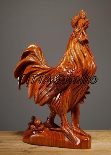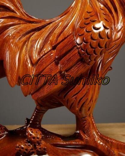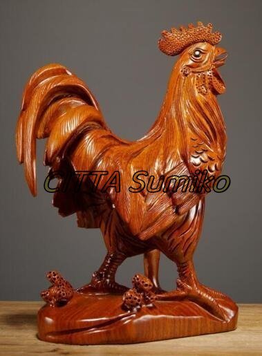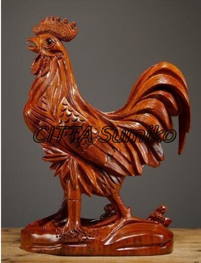 客間木彫り大雄鶏置物黄花梨家居黒檀細工高20 CM
