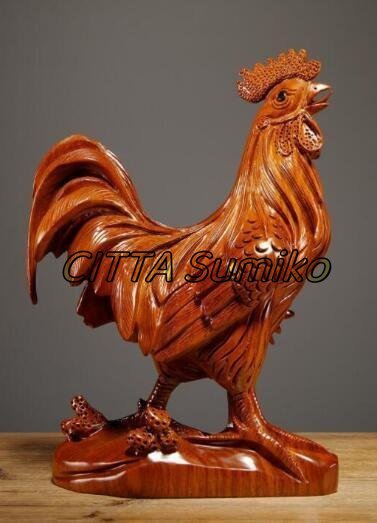 新品推薦 客間木彫り大雄鶏置物黄花梨家居黒檀細工高20 CM
