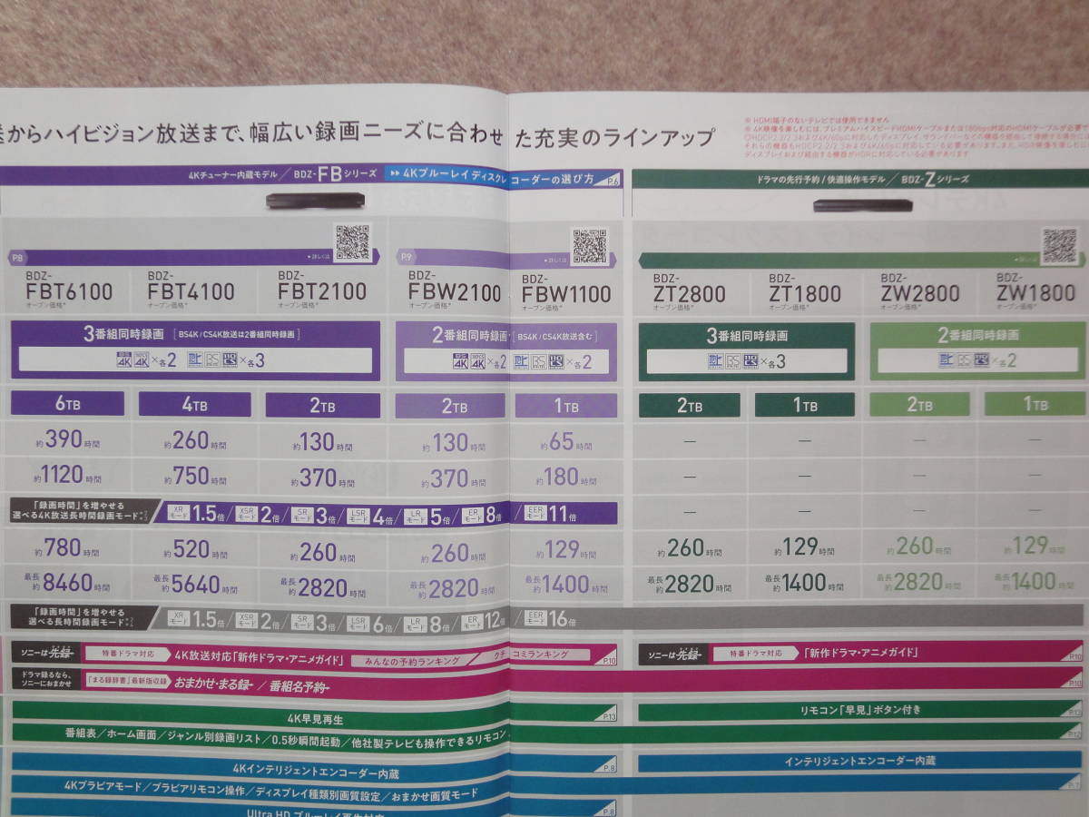 ソニー ブルーレイ レコーダー カタログ sony BD Blu-ray DVD 2022年3月