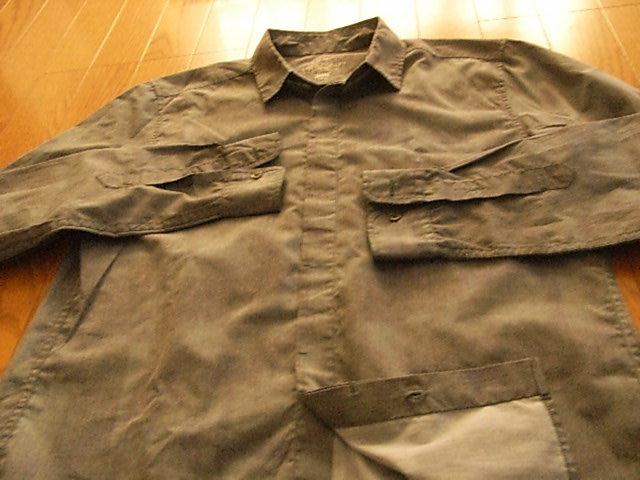 HARE ハレの長袖ドレスシャツです。サイズはMになります。平置き実測サイズは、肩幅約44cm、袖丈約62cm、着丈約68cm、身幅約52cmです。素人採寸のため多少の誤差はご了承ください。全体色はダークグリーン系のデザインになります。素材感もとても良く、ハレらしいとてもかっこいい素敵なデザインです。特に目立つダメージはありませんが、あくまでも中古でありますことを御了承願います。ノークレーム・ノーリターンでお願いします。送料込み(クロネコ便等発送)になります。