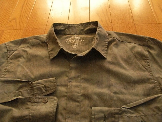 HARE ハレ かっこいい長袖ドレスシャツ ダークグリーン サイズM