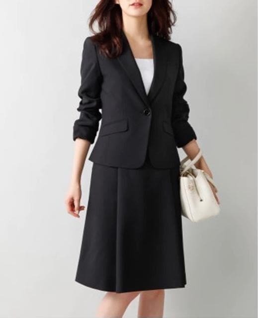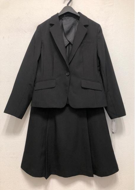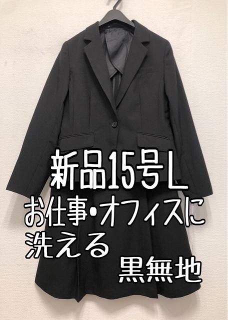 新品☆15号L黒無地♪洗えるスカートスーツ♪タックフレアお仕事オフィス☆u936