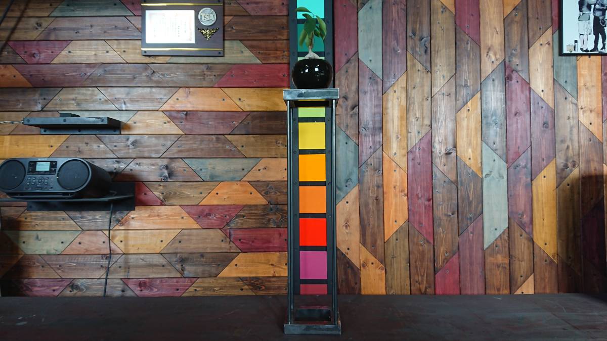 角鉄の武骨さと丸棒のシャープさを同時に楽しめるデザインとなっております。