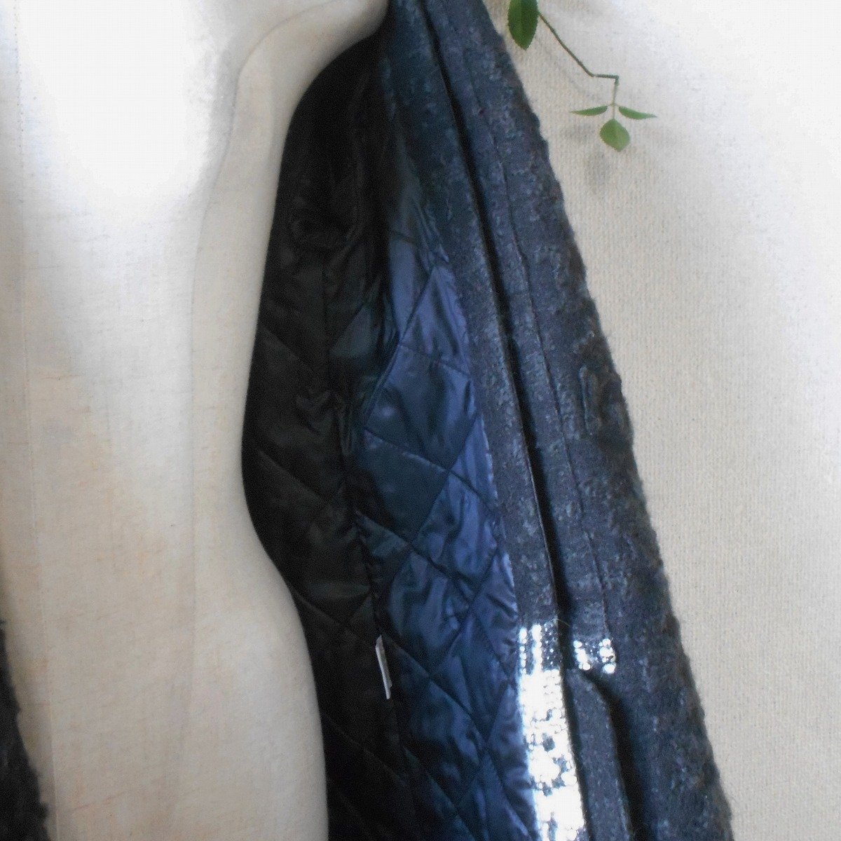 前はスナップ式のダブルで、中綿入りのライナーが付いたとっても素敵な一着です。(ライナーはお袖もあります)