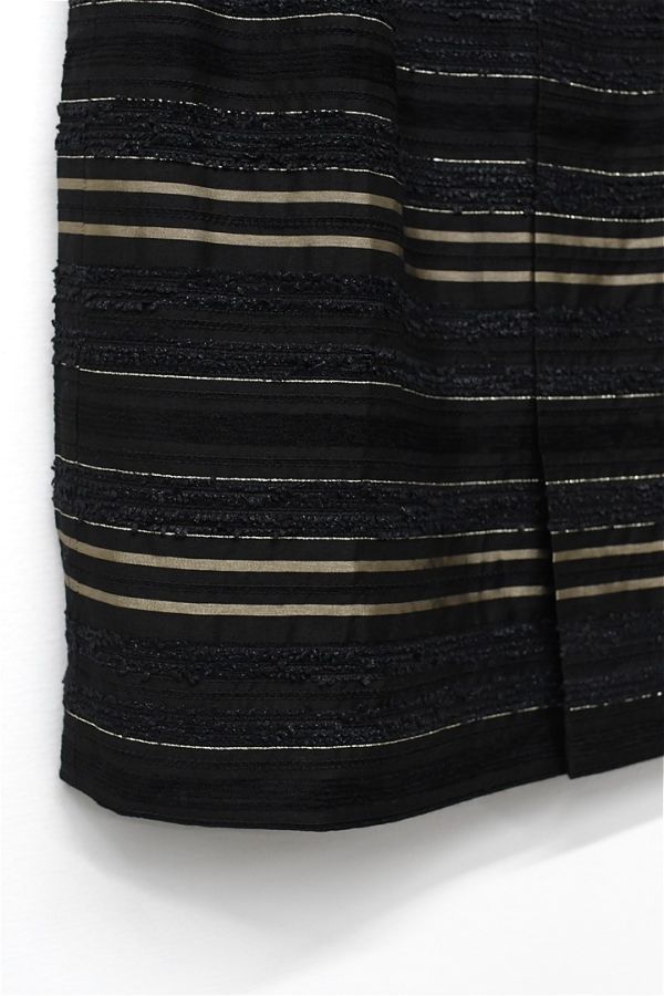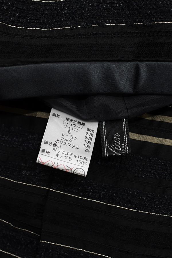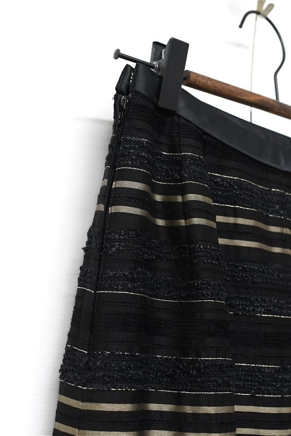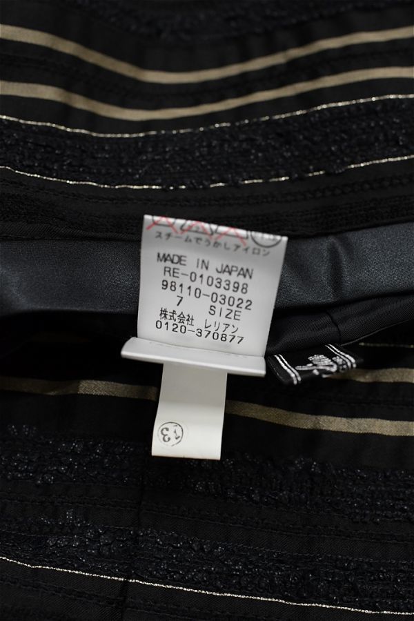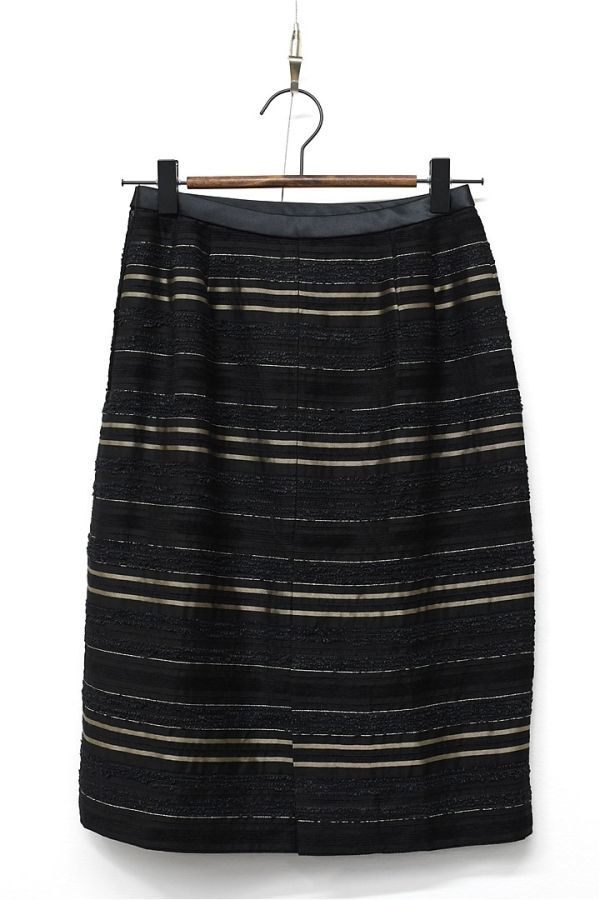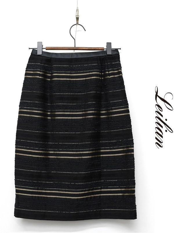 H314/美品 Leilian ひざ丈スカート ボーダー シルク混 光沢 生地切替 ツイード サイドファスナー 7 S 黒