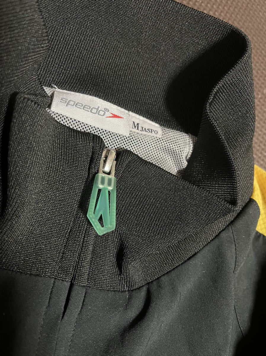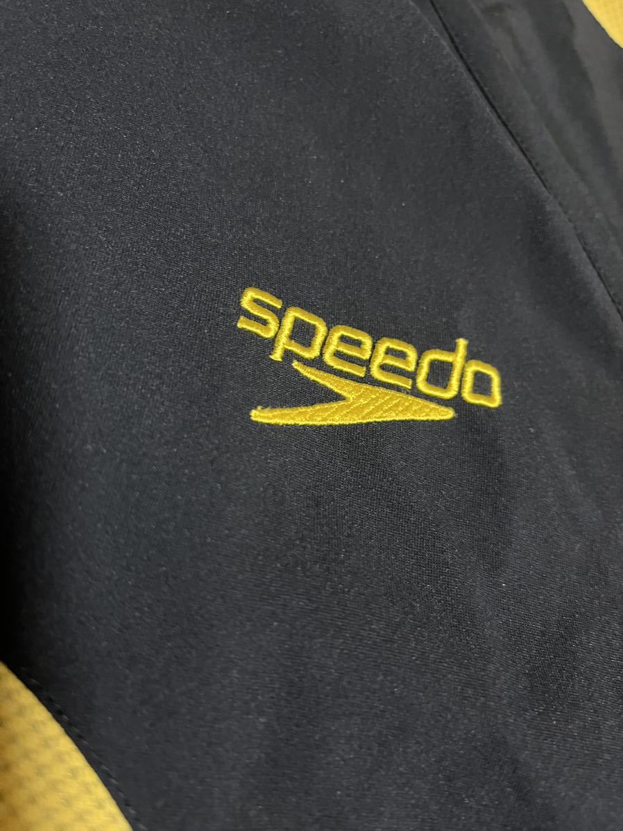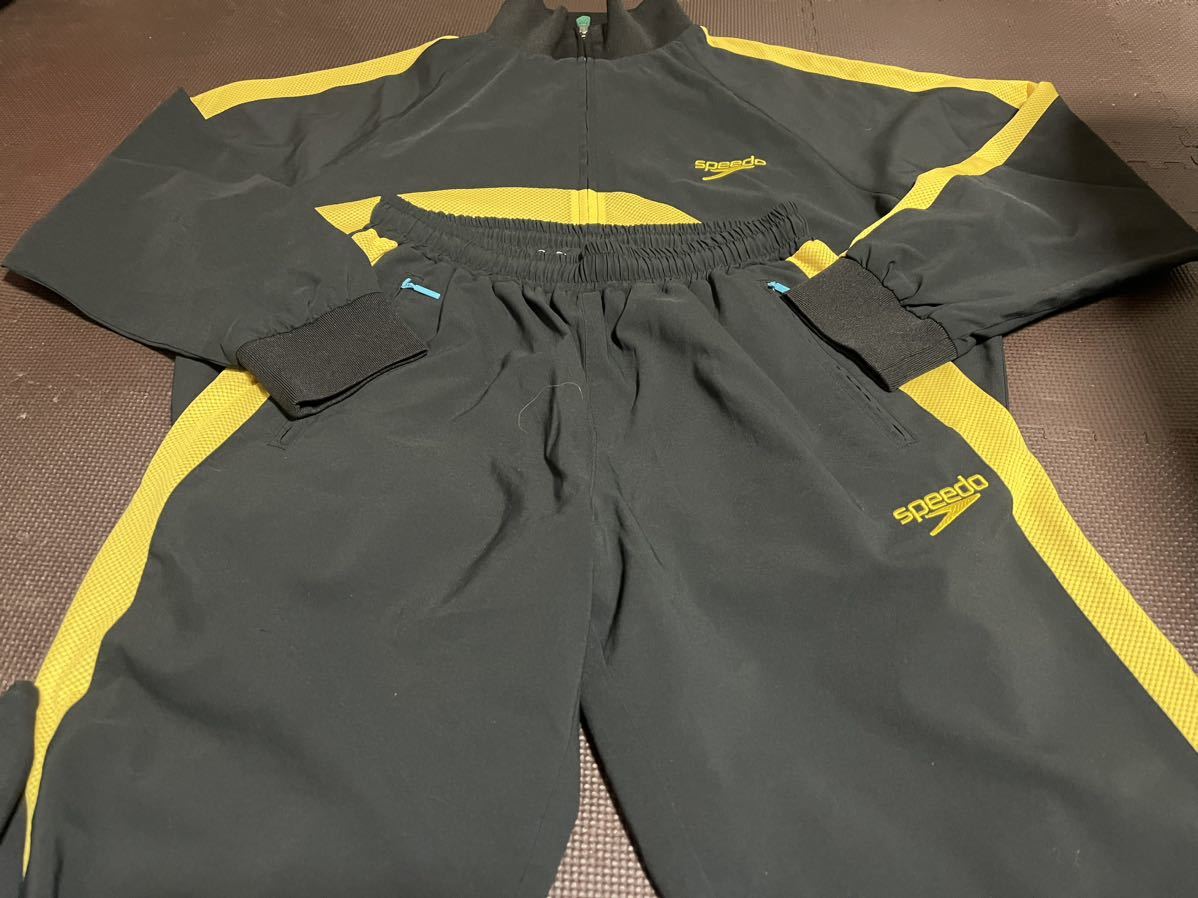 美品speedダブルファスナー黒、ロゴ黄色(刺繍)ストレッチ上下セット