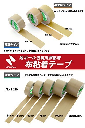 1巻・黄土色 100mm幅 102N7-100・・Size:100mm幅・【サイズ】幅50mm×25m巻・【基材】ポリラミスフ・【粘着剤】ゴム系(無溶剤)・【テープ厚】0.30mm・【巻芯径】76mm重梱包用の布テープ。 強粘着で抜群の保持力。 幅広タイプなので梱包だけでなく、シートやマット類の固定、パネルの貼り付け等に最適。