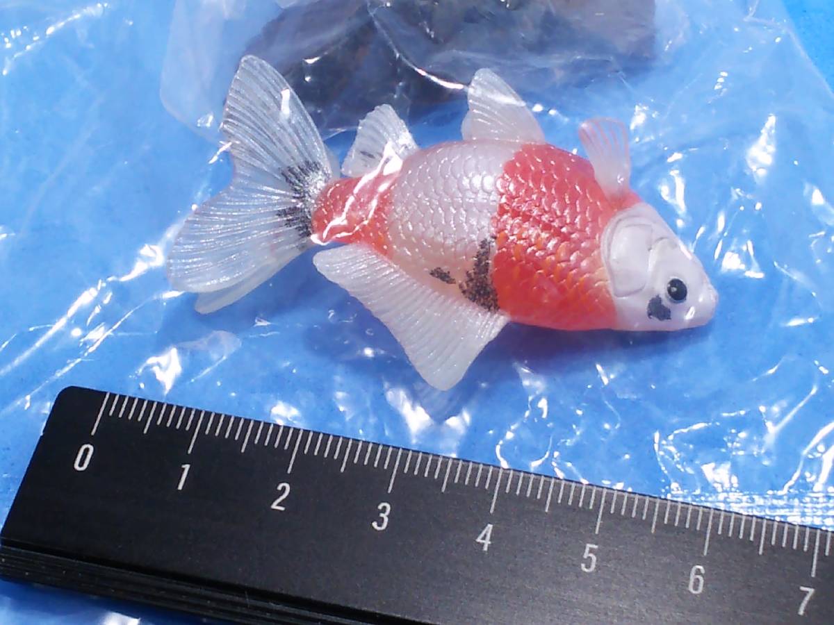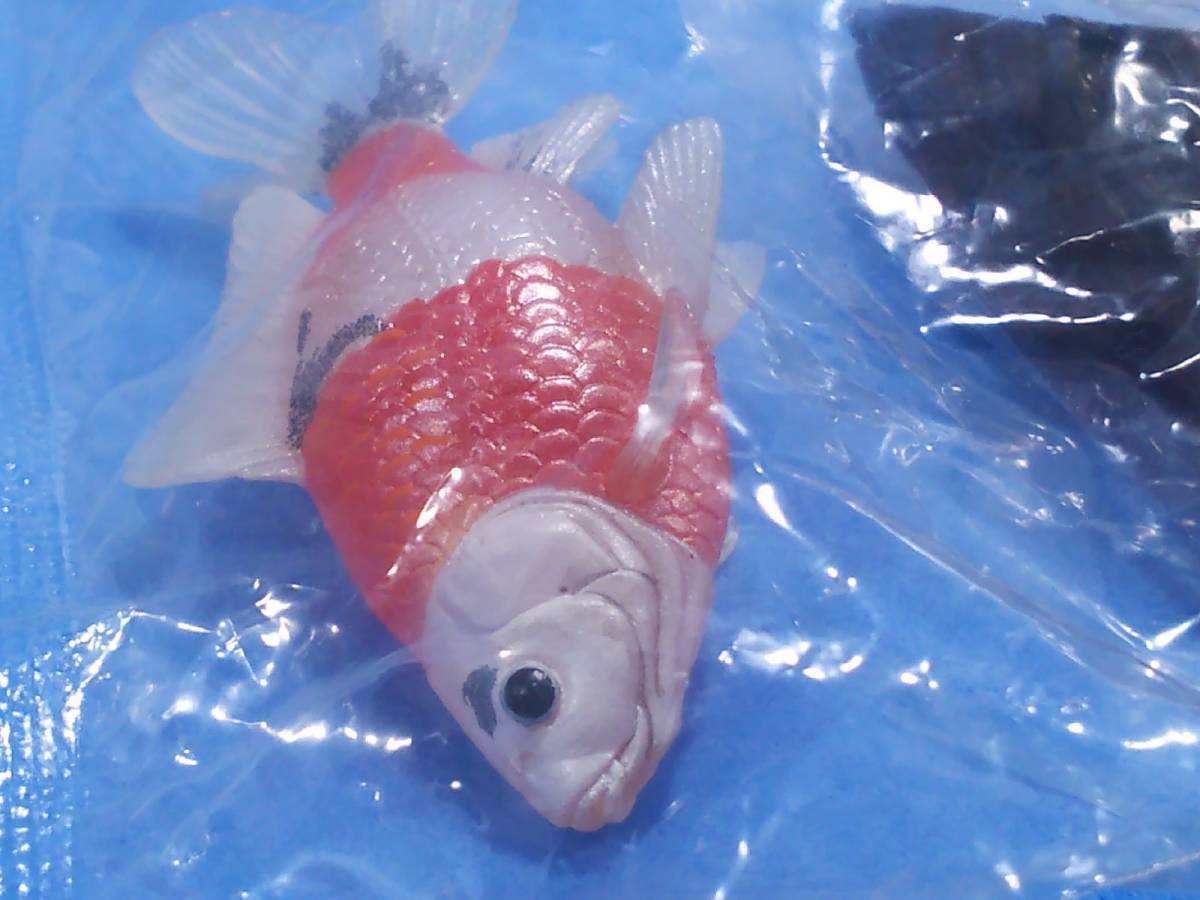 *画像でお分かりの通り、かなり精緻でリアルです。半透明のベース素材を活かした着色も秀逸です。類似製品も多いですが、ガチャ系の金魚フィギュアの中では出来が良いです。