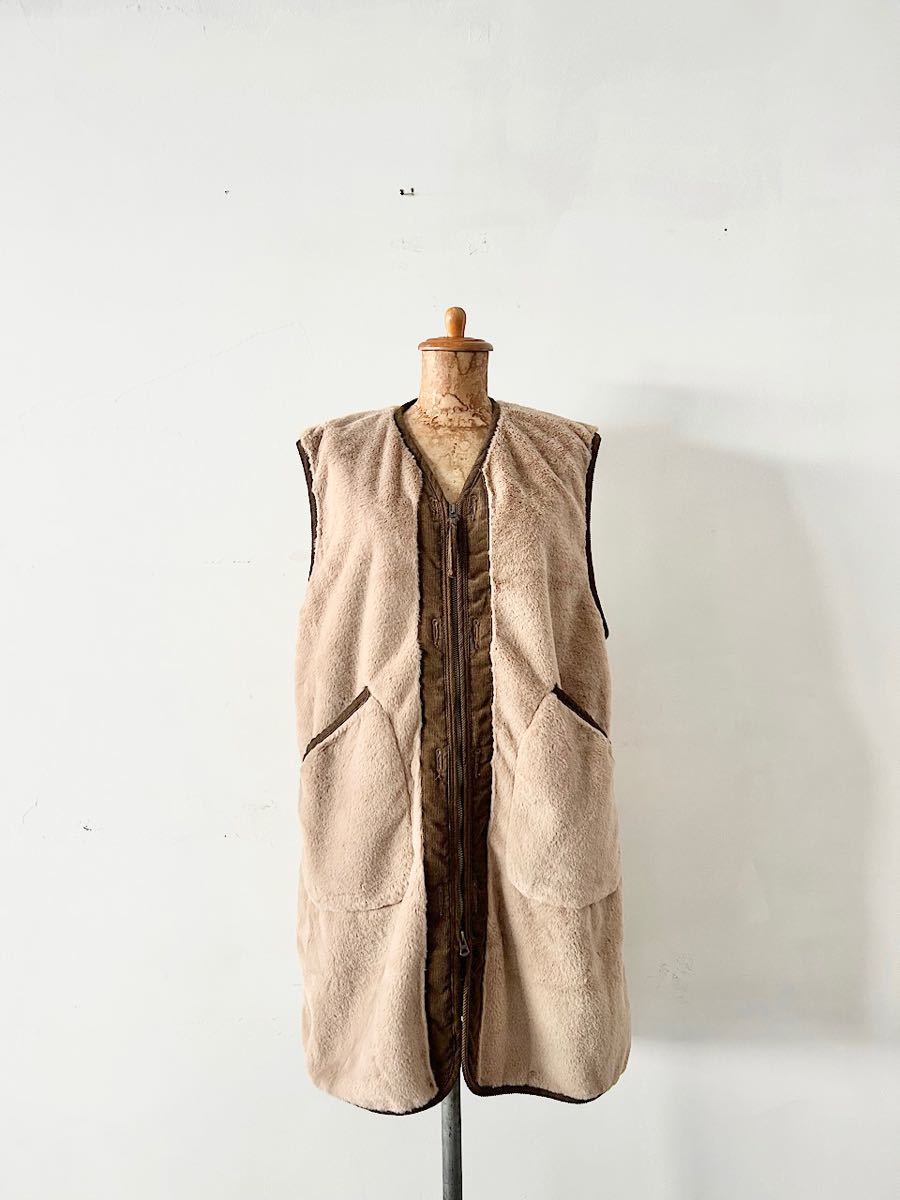 【美品】KHA:KI エコファー ミドル ライナー ベスト サイズ1 BEIGE