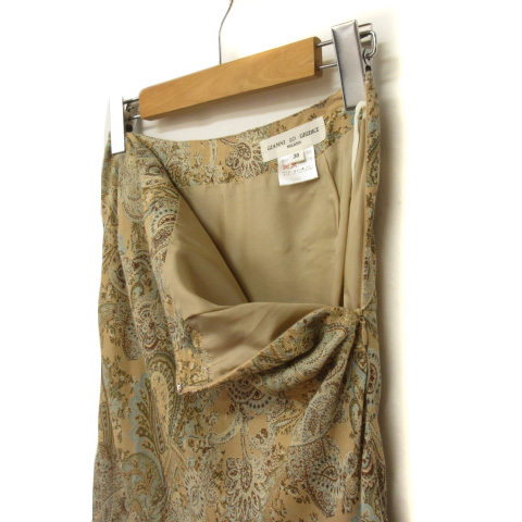 ジャンニ ロ ジュディチェ GIANNI LO GIUDICE スカート ペイズリー レーヨン リネン 36 ベージュ レディース