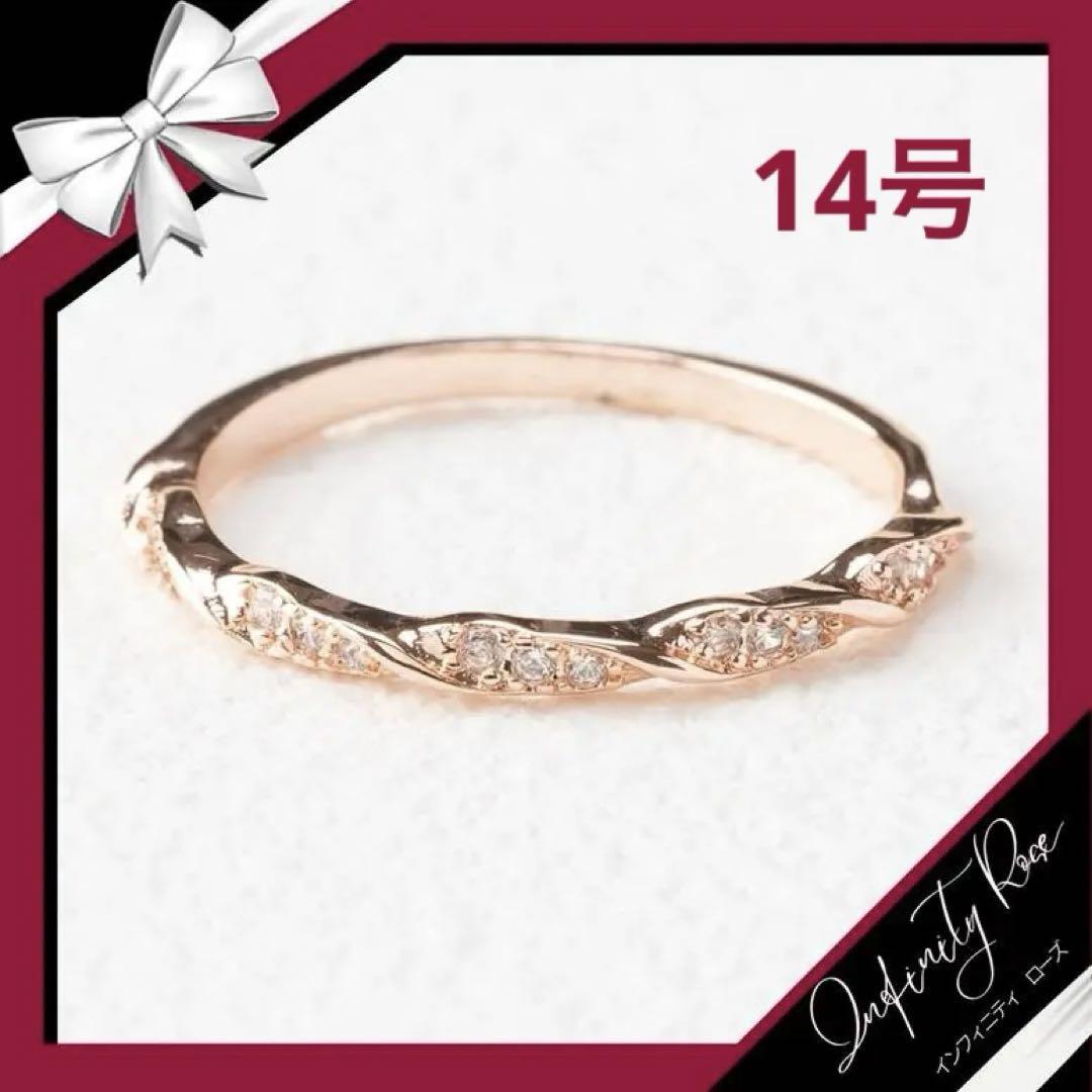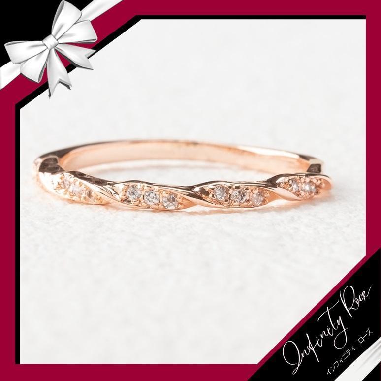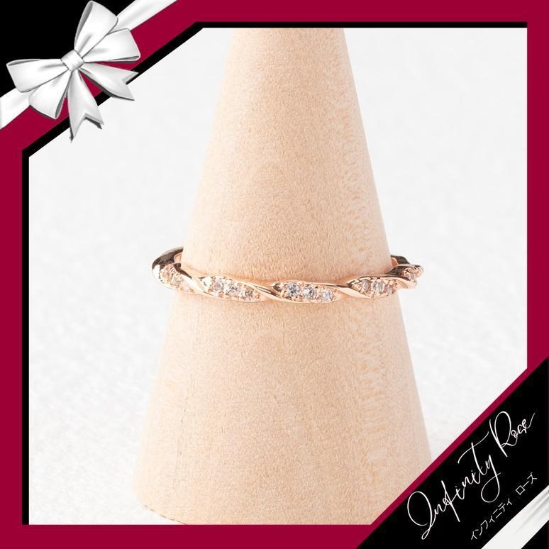 (R006P)14号 ハーフツイストピンクゴールドジルコニアエンゲージリング 指輪 爪留め