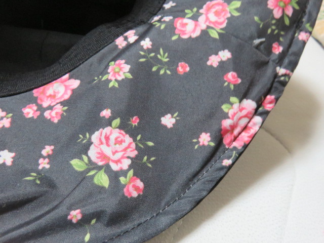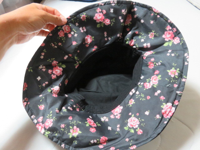 ハット 帽子 ぼうし ブラック 黒色 花柄 サイズフリー 後部にゴムでサイズ調整 エレガントです 未使用 を出品します。