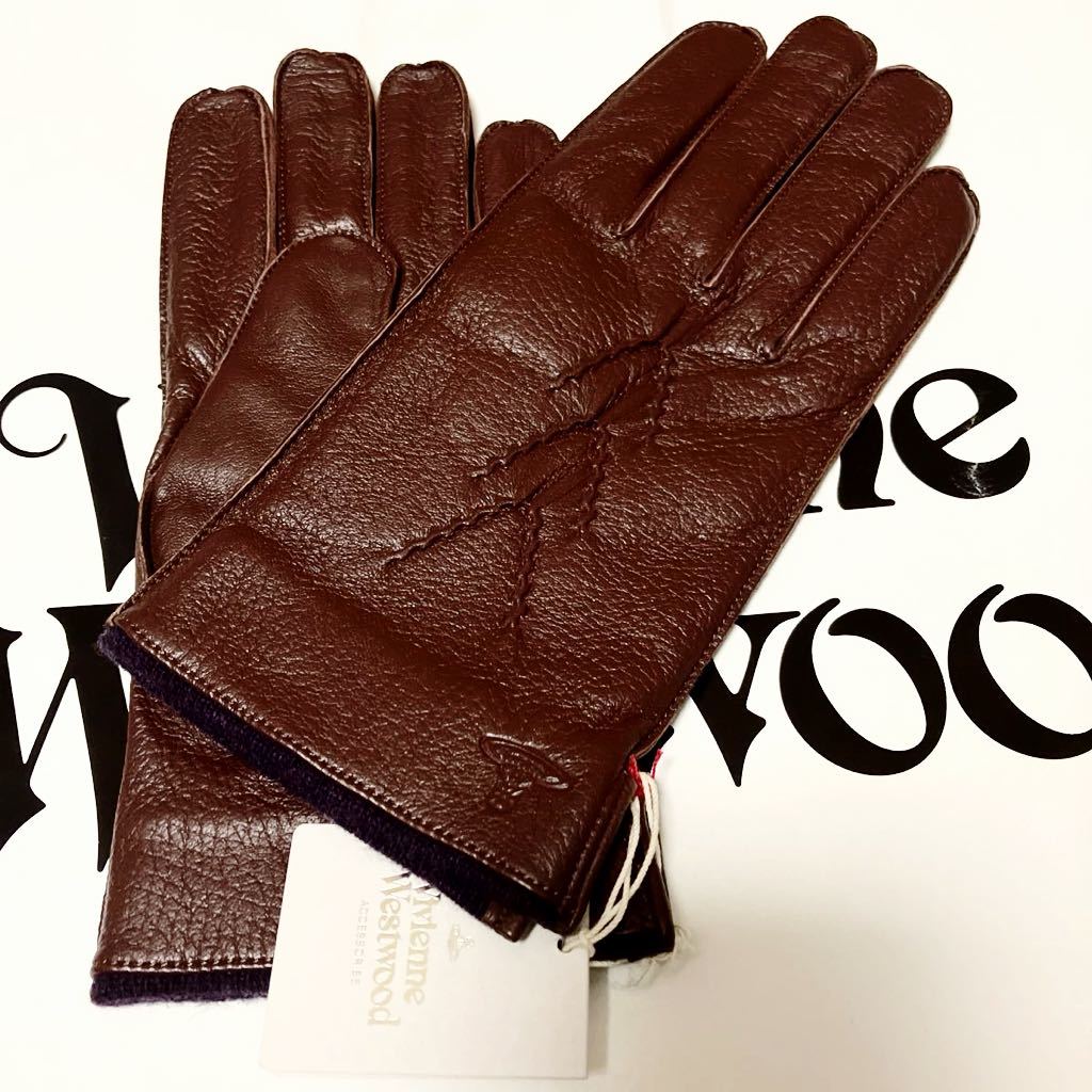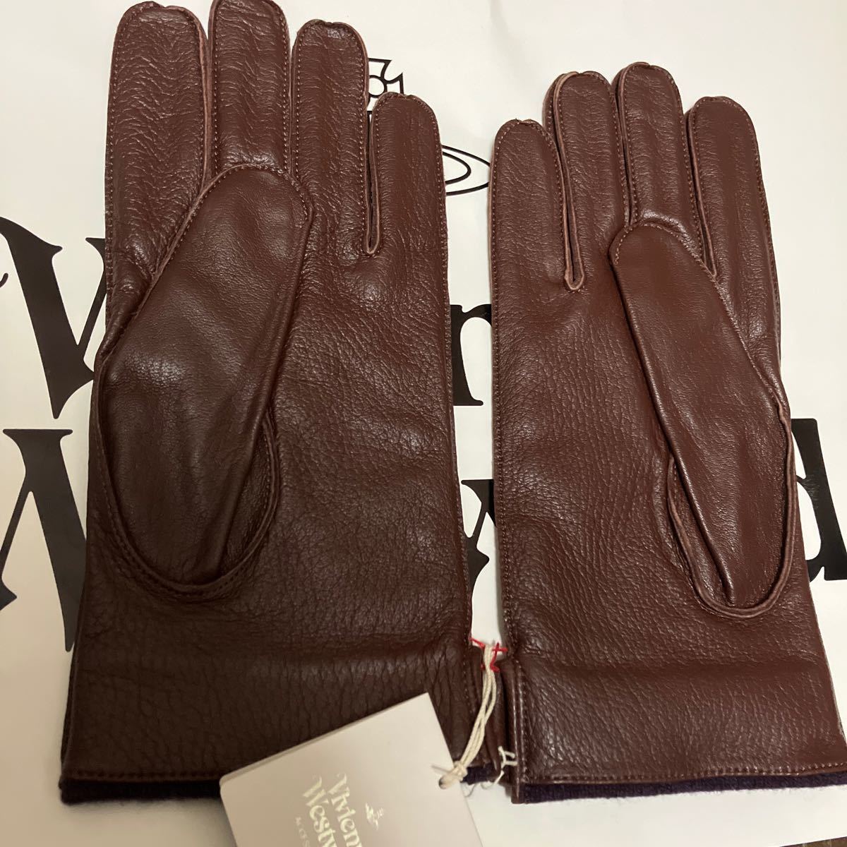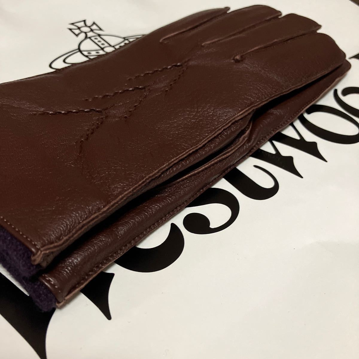 送料込●新品●Vivienne Westwood 羊革裏地ニット手袋 ブラウンA メンズ24cm 縦25cm ×横10.5cmヴィヴィアンウエストウッド
