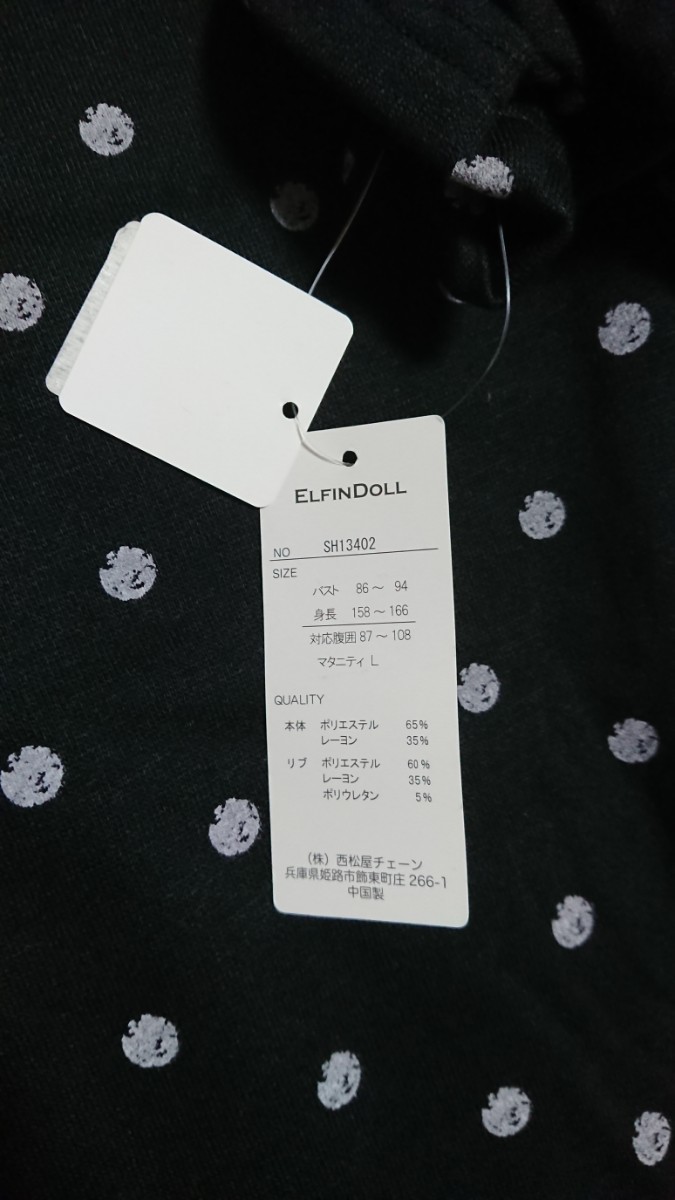 @♪423☆未使用・保管品☆授乳服☆袖シャーリング裏起毛トレーナーチュニック 黒М